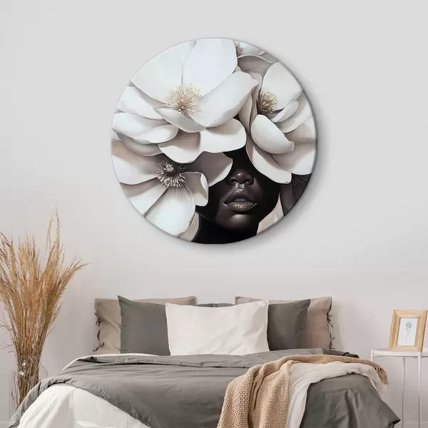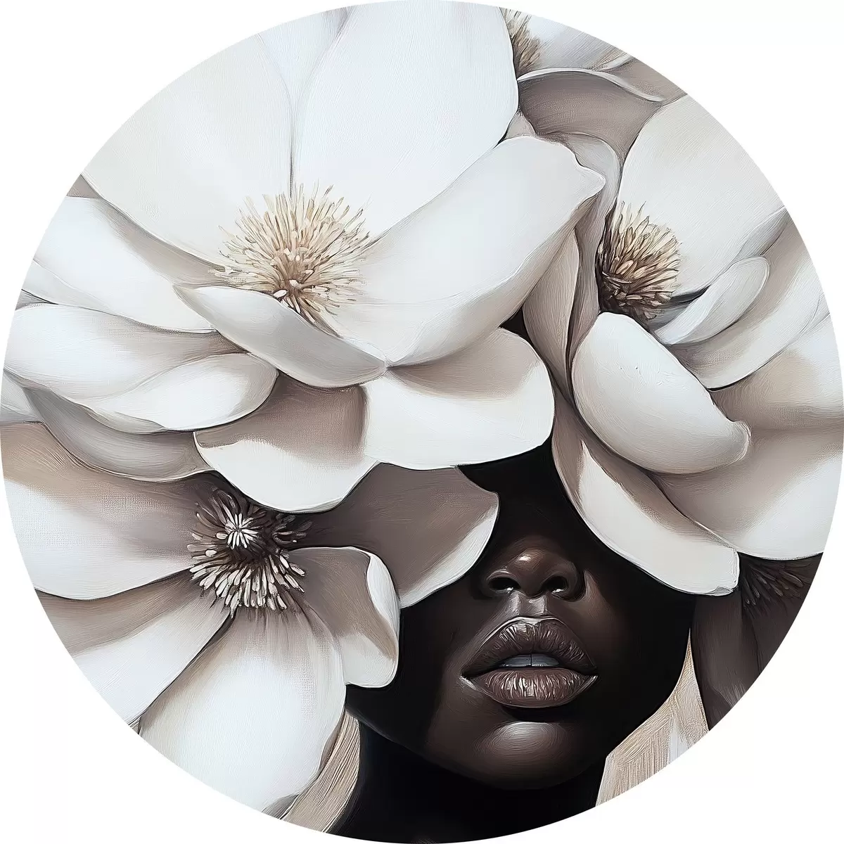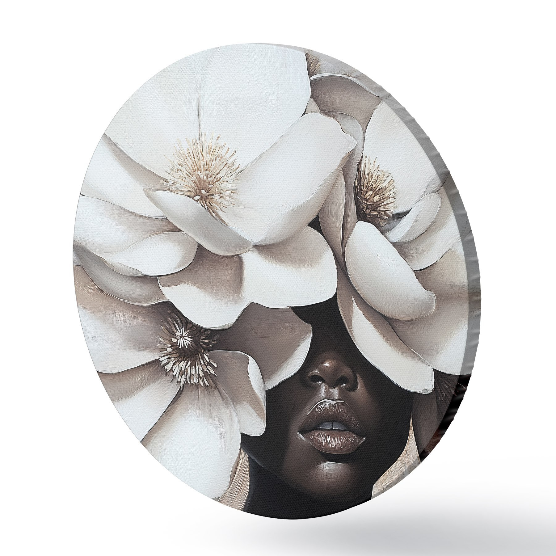 Runde Gemälde Eine Frau mit Blumen auf dem Kopf r39899