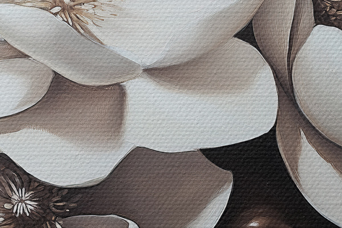 Drei Materialtypen stehen zur Verfügung: Economic Canvas - ein dichtes und haltbares Material für den Digitaldruck, identisch mit Malerleinwand, wasserfeste Oberfläche, realistische Wiedergabe von Details, mittelkörniges Material. Premium Canvas - die Textur ähnelt der einer Malerleinwand (verwobene kleine Fäden). Weiche, detaillierte Wiedergabe des Bildes auf einer matten Oberfläche. Eco-Premium - hochwertiges Gewebe aus 100% Baumwolle. Dank der natürlichen Baumwollfasern ist das Material langlebig und verschleißfest. Hervorragende Farbwiedergabe und Detailtreue.