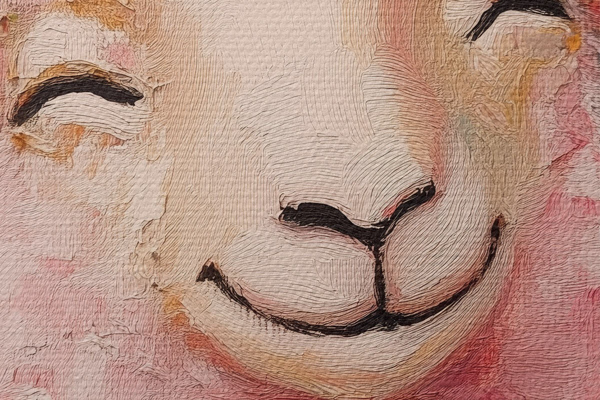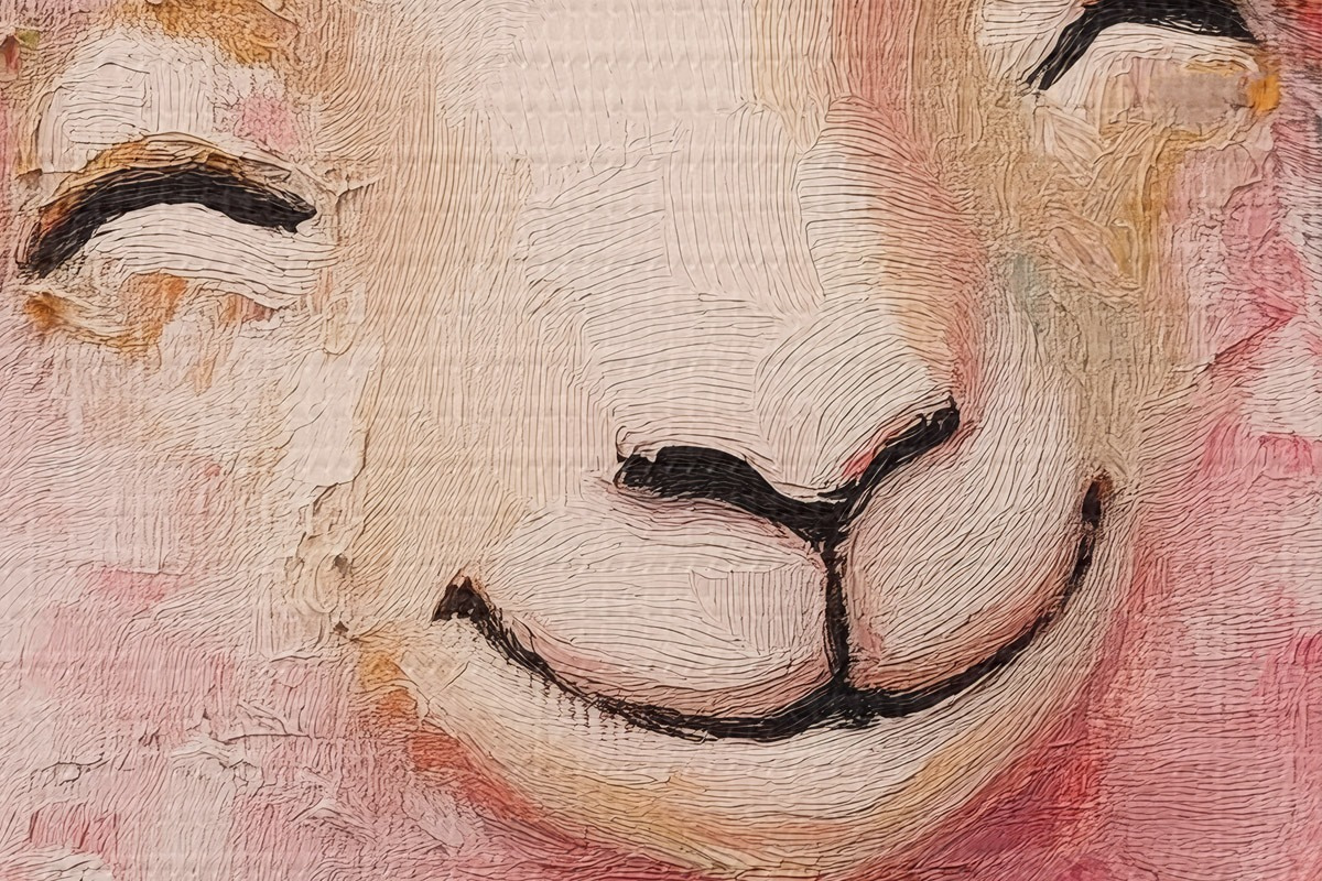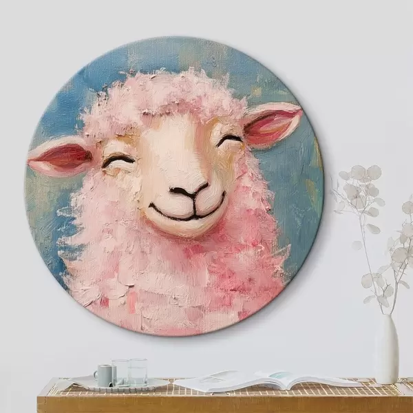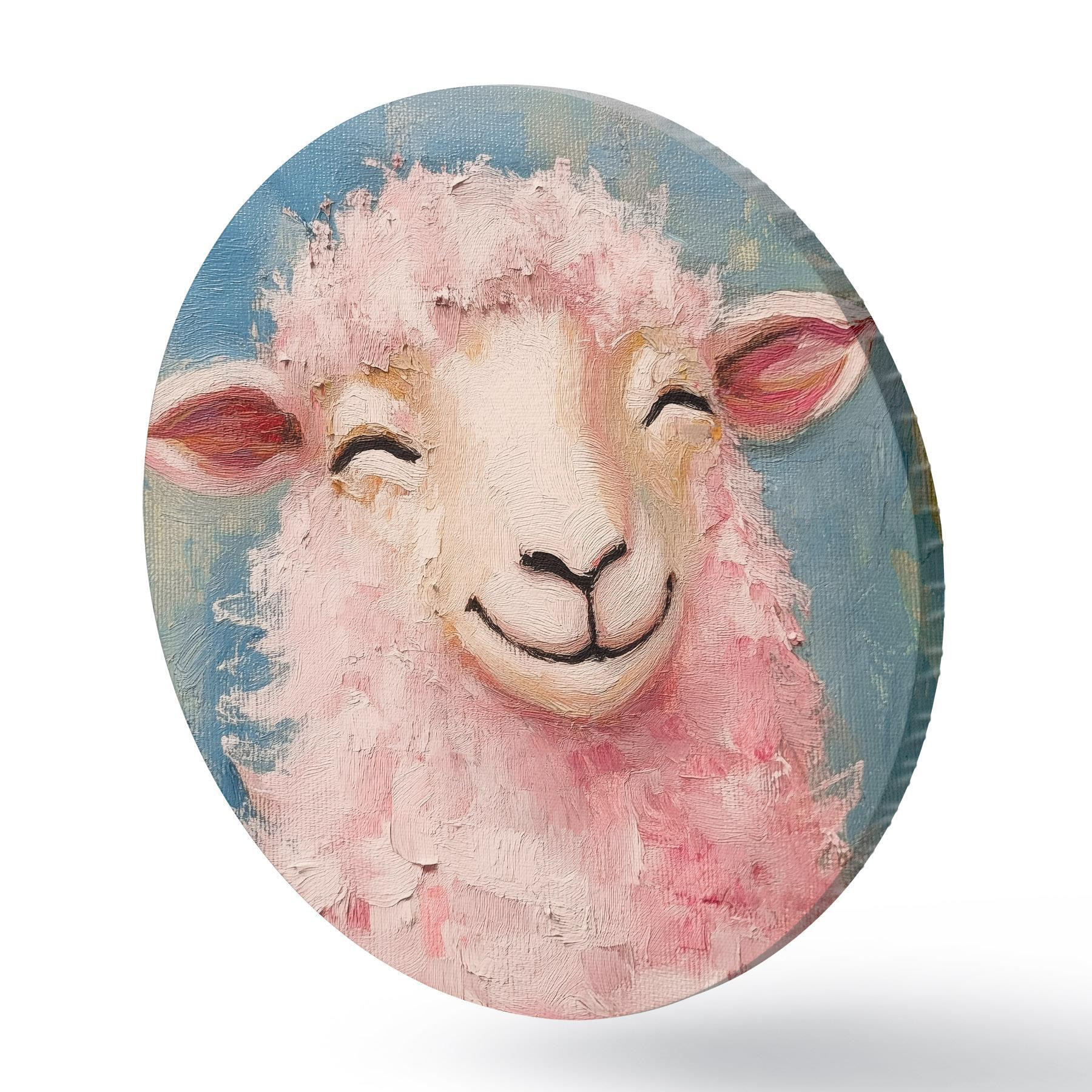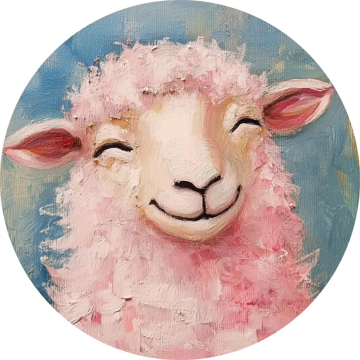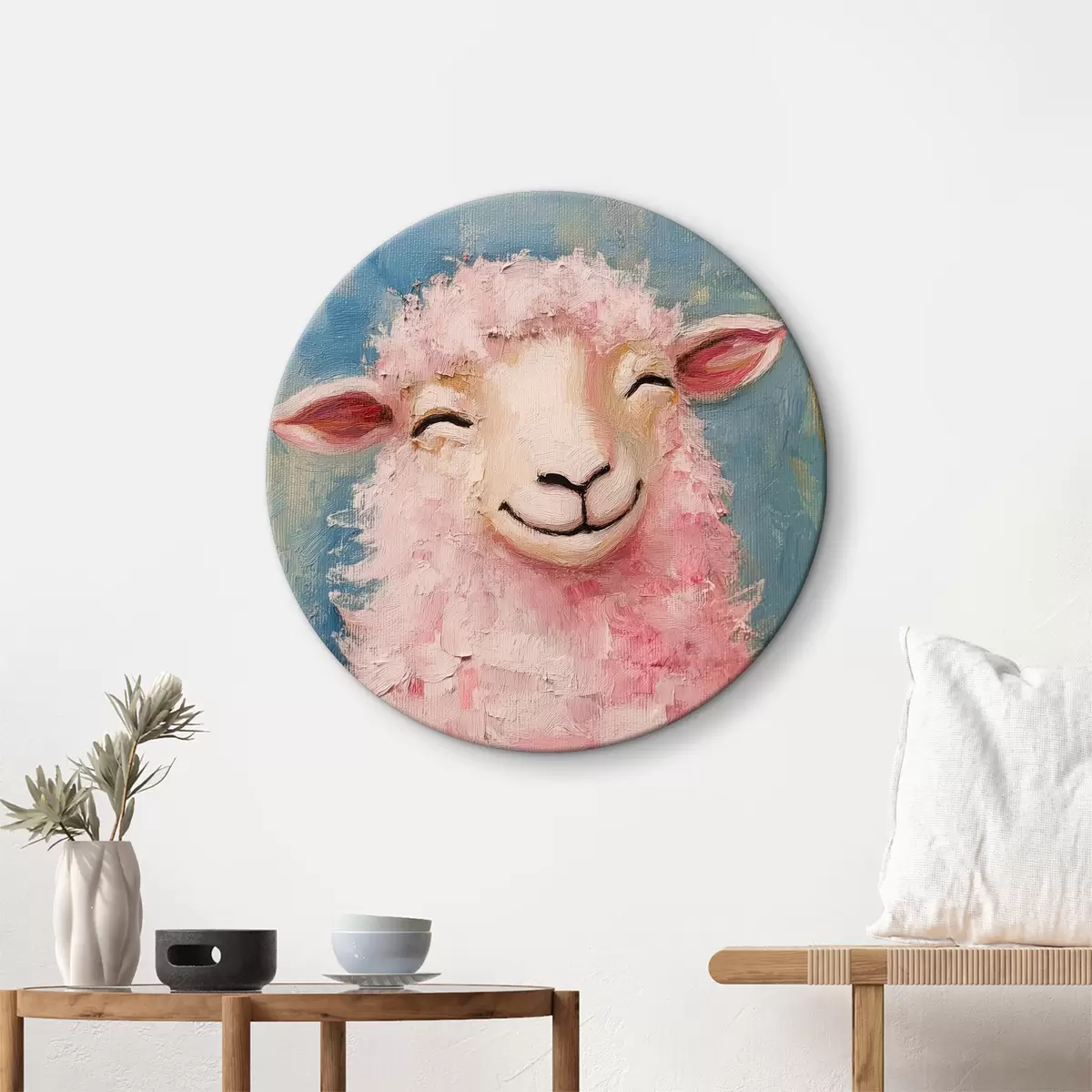 Runde Gemälde Fröhlicher Widder mit rosa Wolle r39911