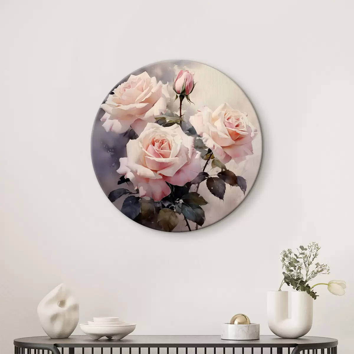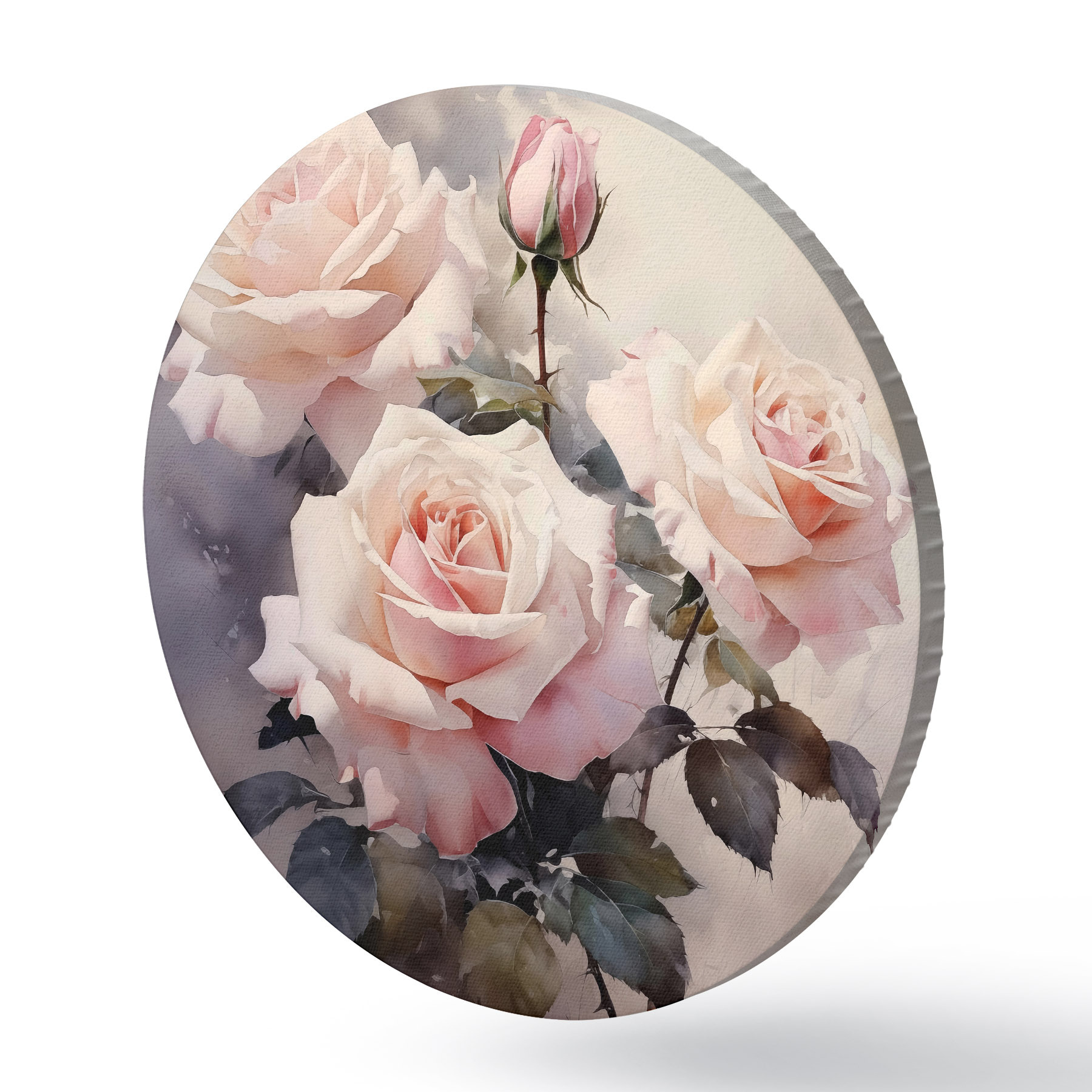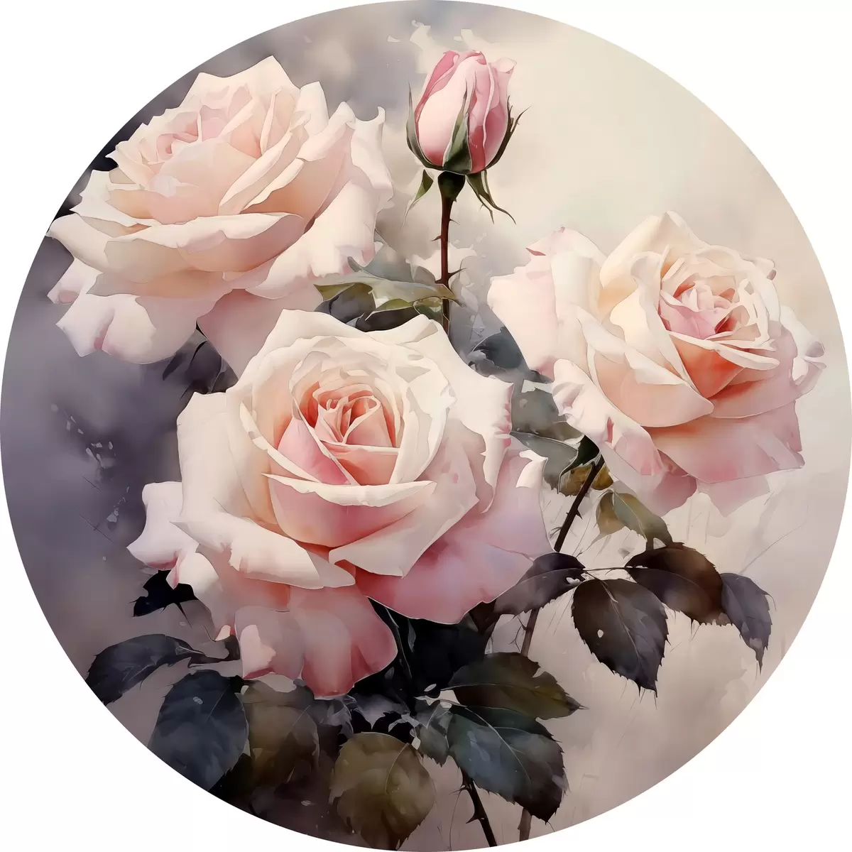 Runde Gemälde Weiße rosa Rosen auf dunklem Hintergrund Aquarell r39927