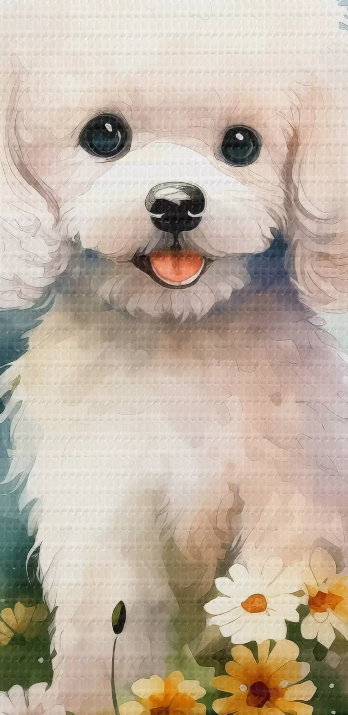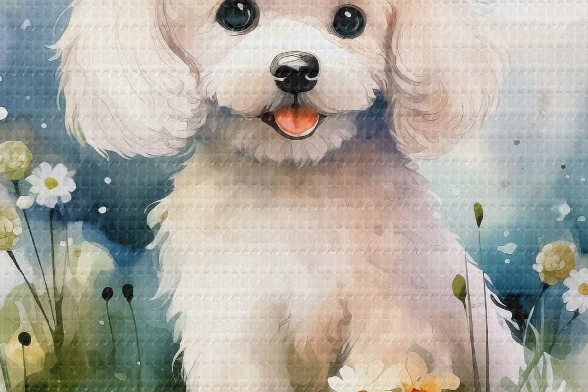 Bild Kleiner weißer Pudel sitzt im Blumenaquarell Nr r39928
