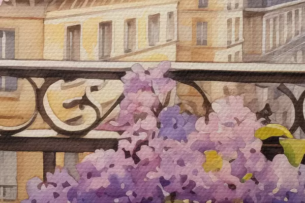 Bild Veilchen in einem Topf auf einem Balkon in Paris Aquarell Nr r39931