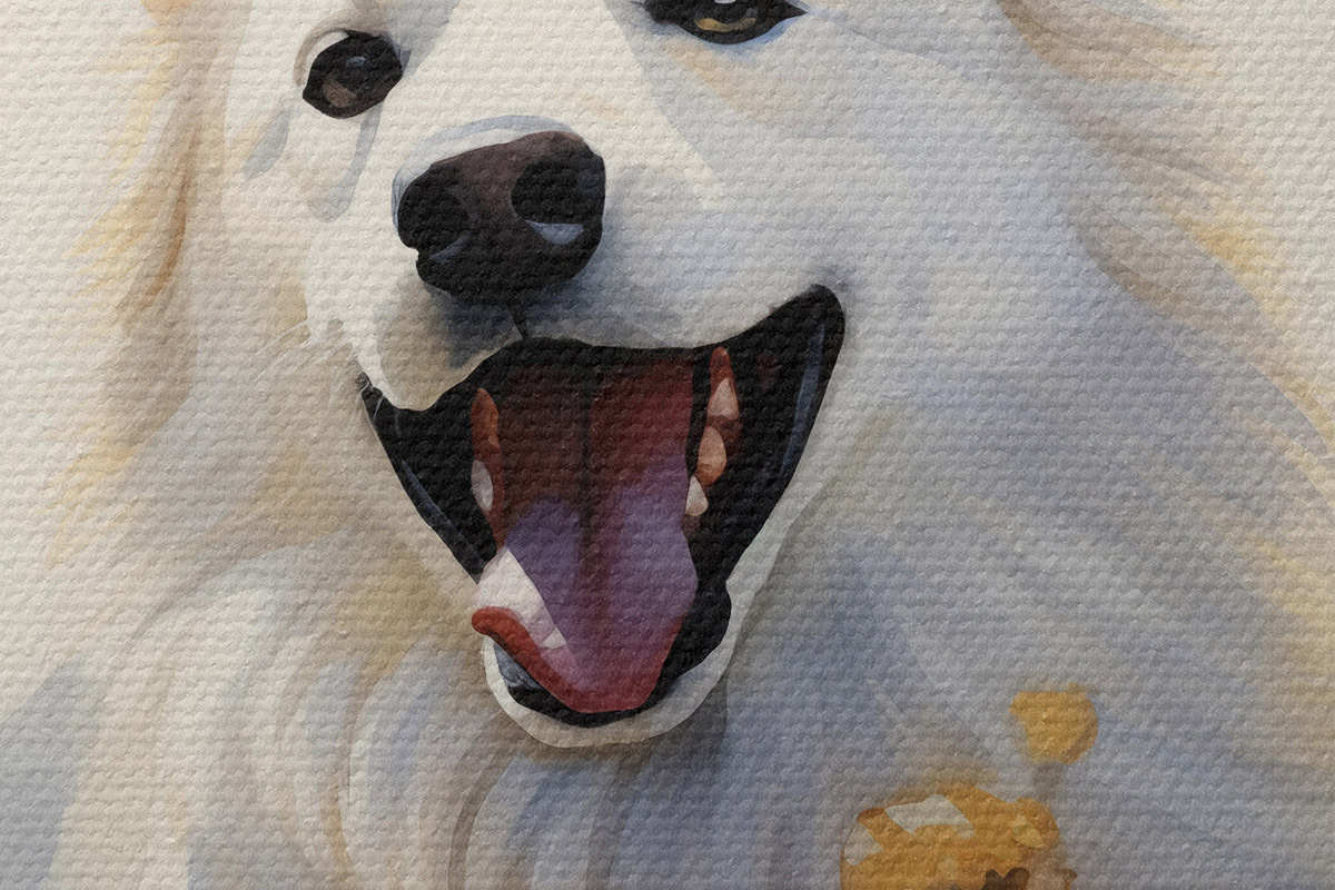 Bild Weißer Hund sitzt in Blumen, Schmetterlinge fliegen Aquarell Nr r39936