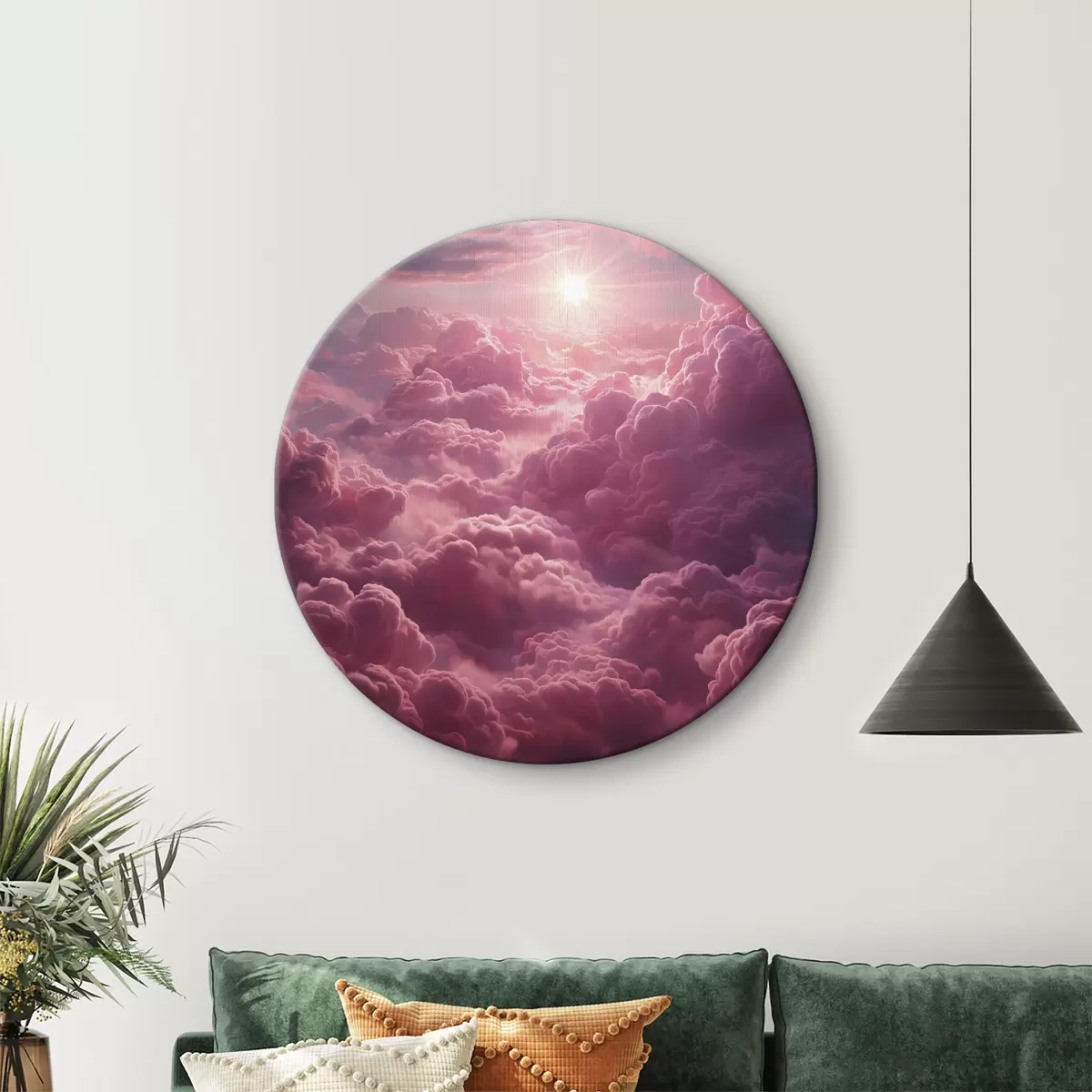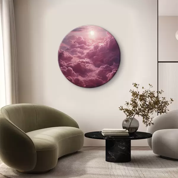 Runde Gemälde Lila und rosa Wolken, ätherisch, Sonnenuntergang, Realismus r39970