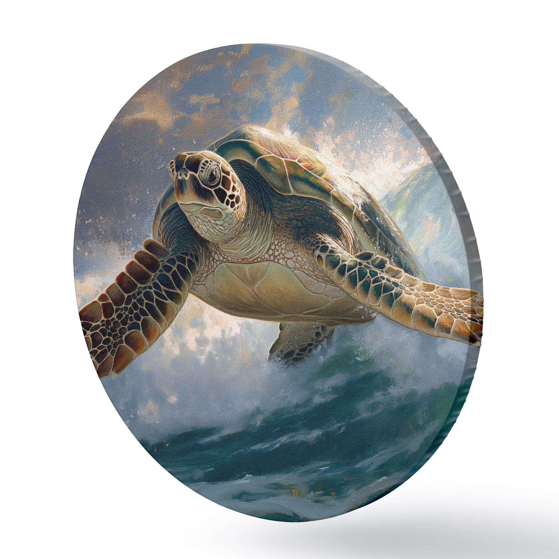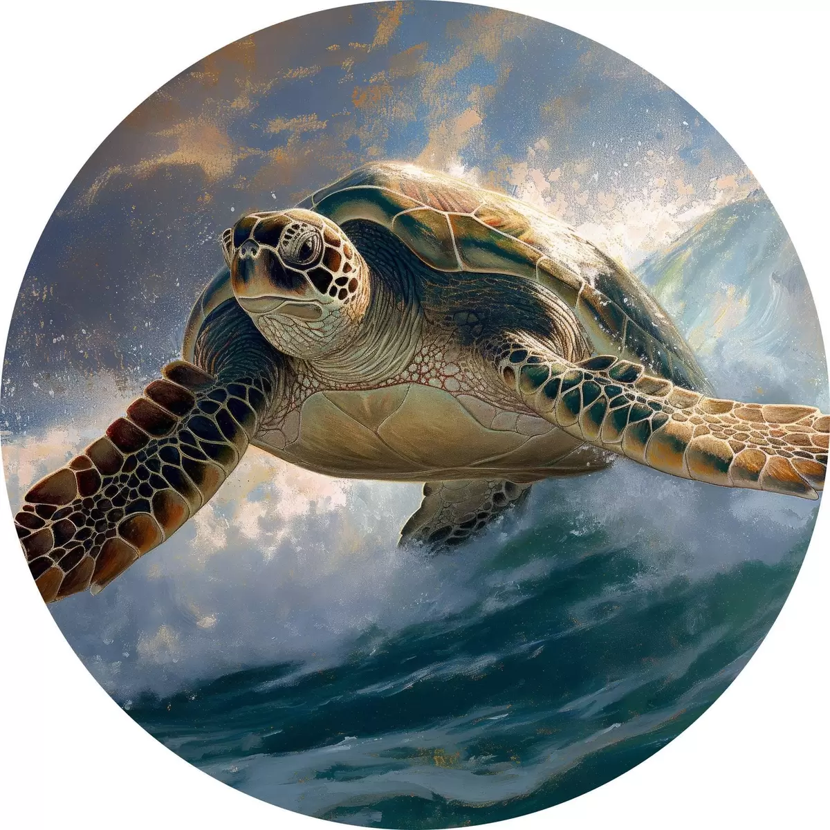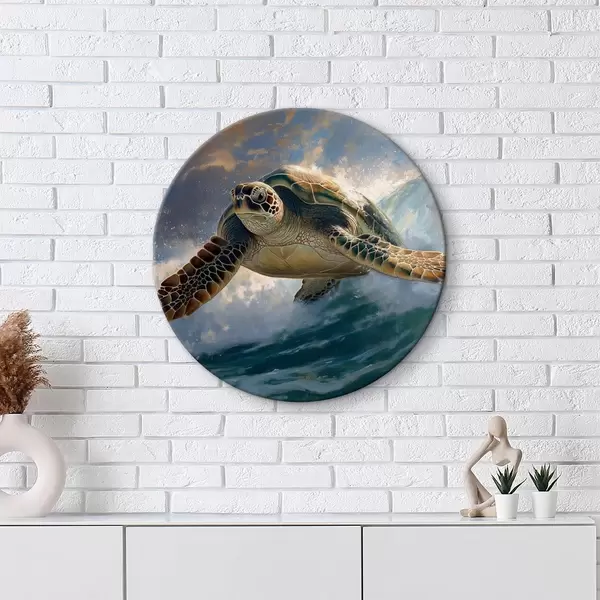 Runde Gemälde Schildkröte, Wasser, grün, blau r40001