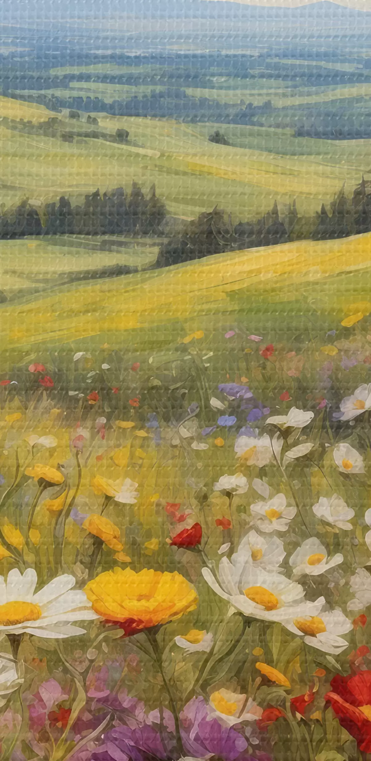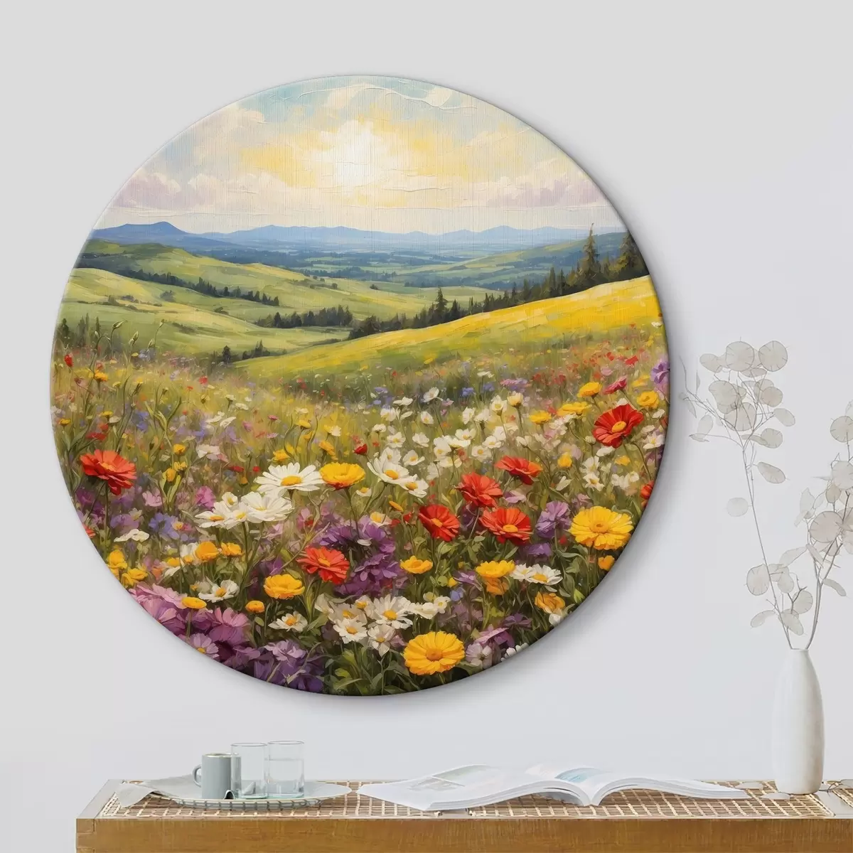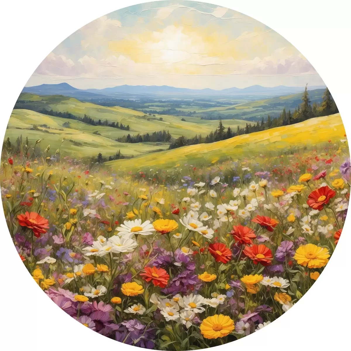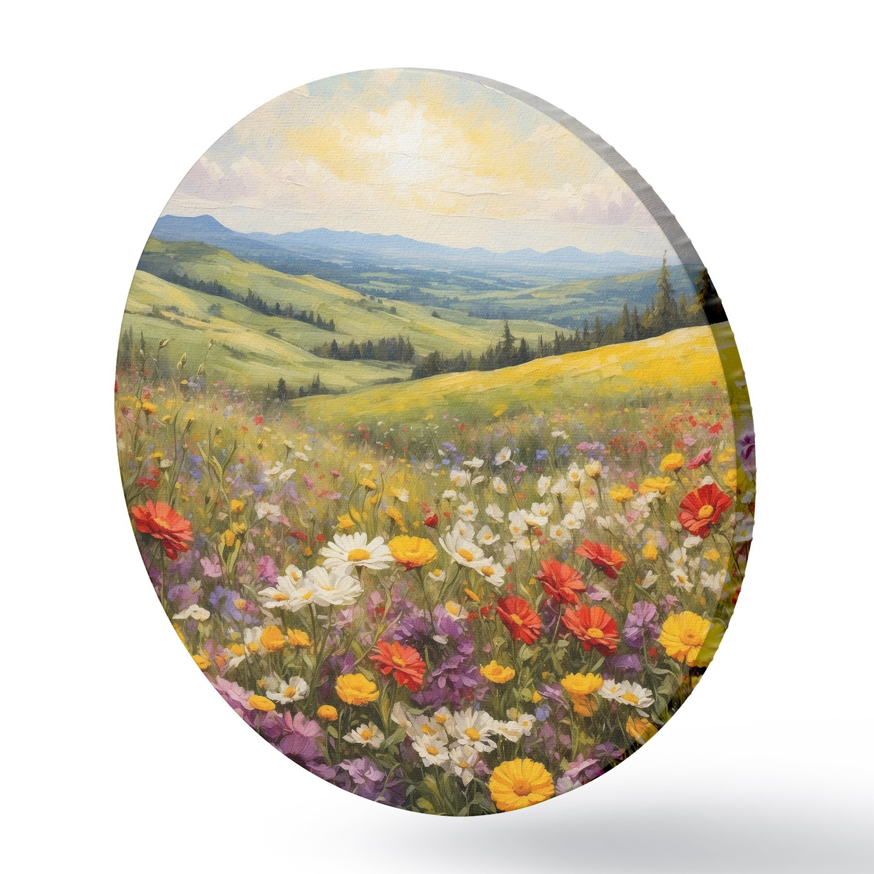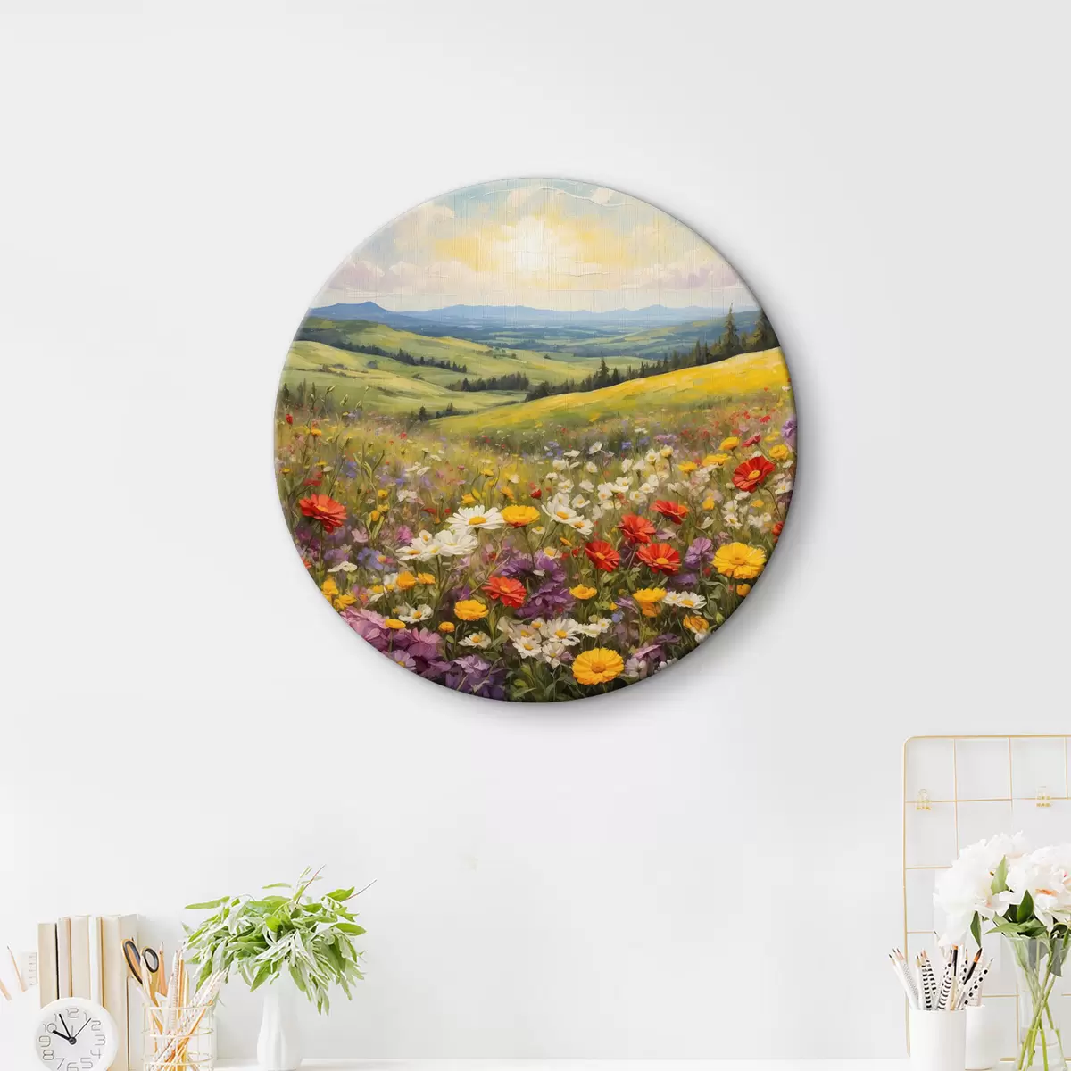 Runde Gemälde Blumenfeld bei Sonnenuntergang r40073