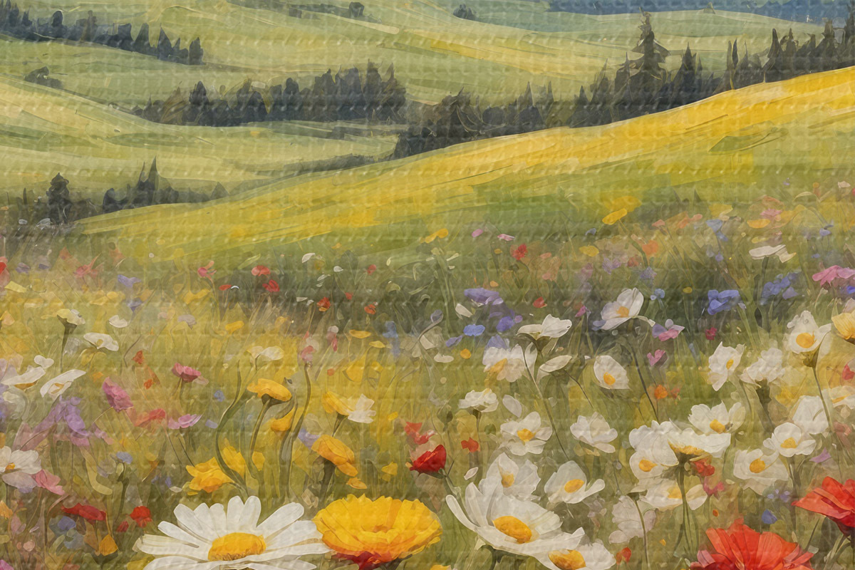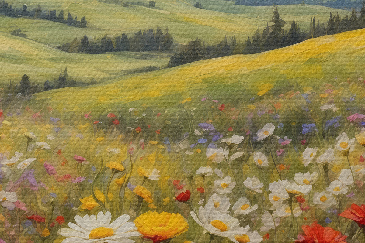 Bild Blumenfeld bei Sonnenuntergang Nr r40073