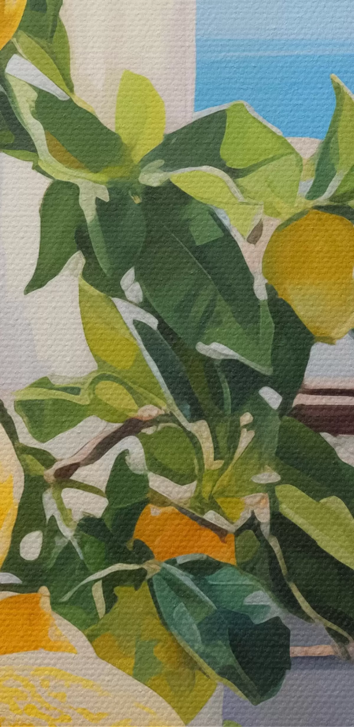 Bild Zitronen am Baum und Tisch auf dem Hotelbalkon mit Meerblick, Ölgemälde-Imitation Nr r40091