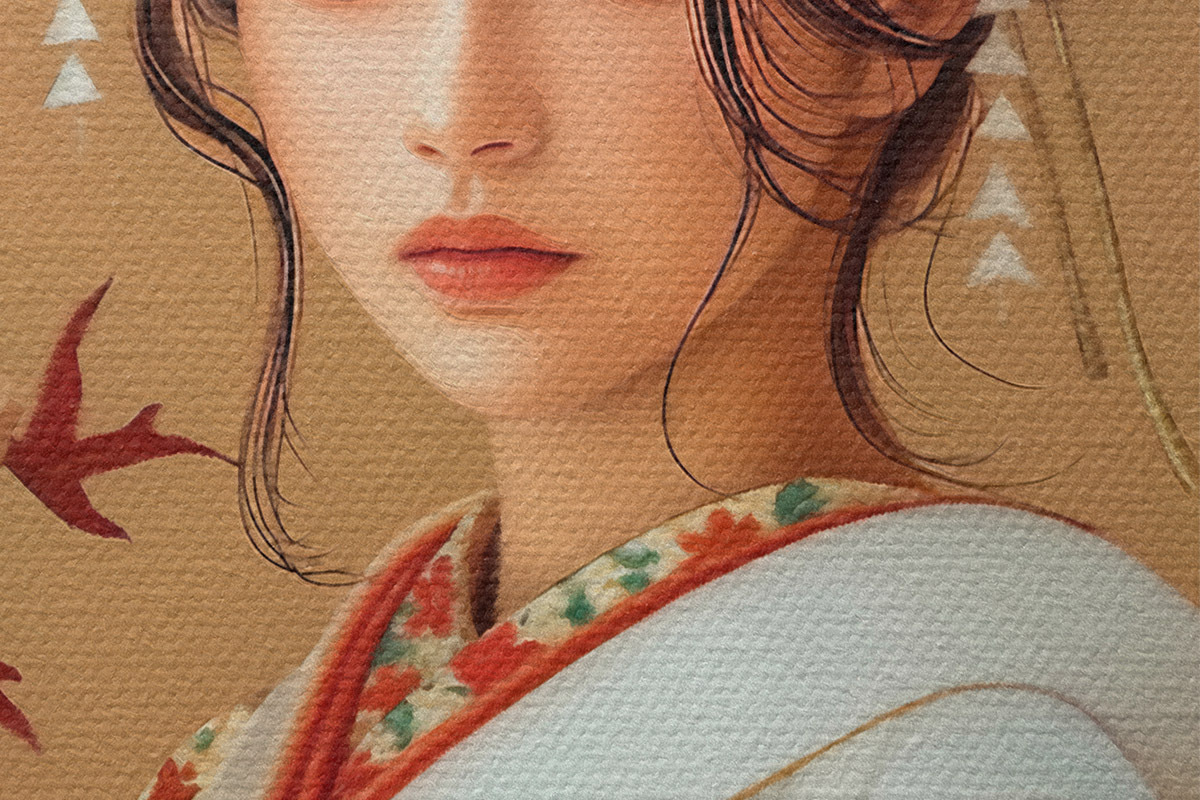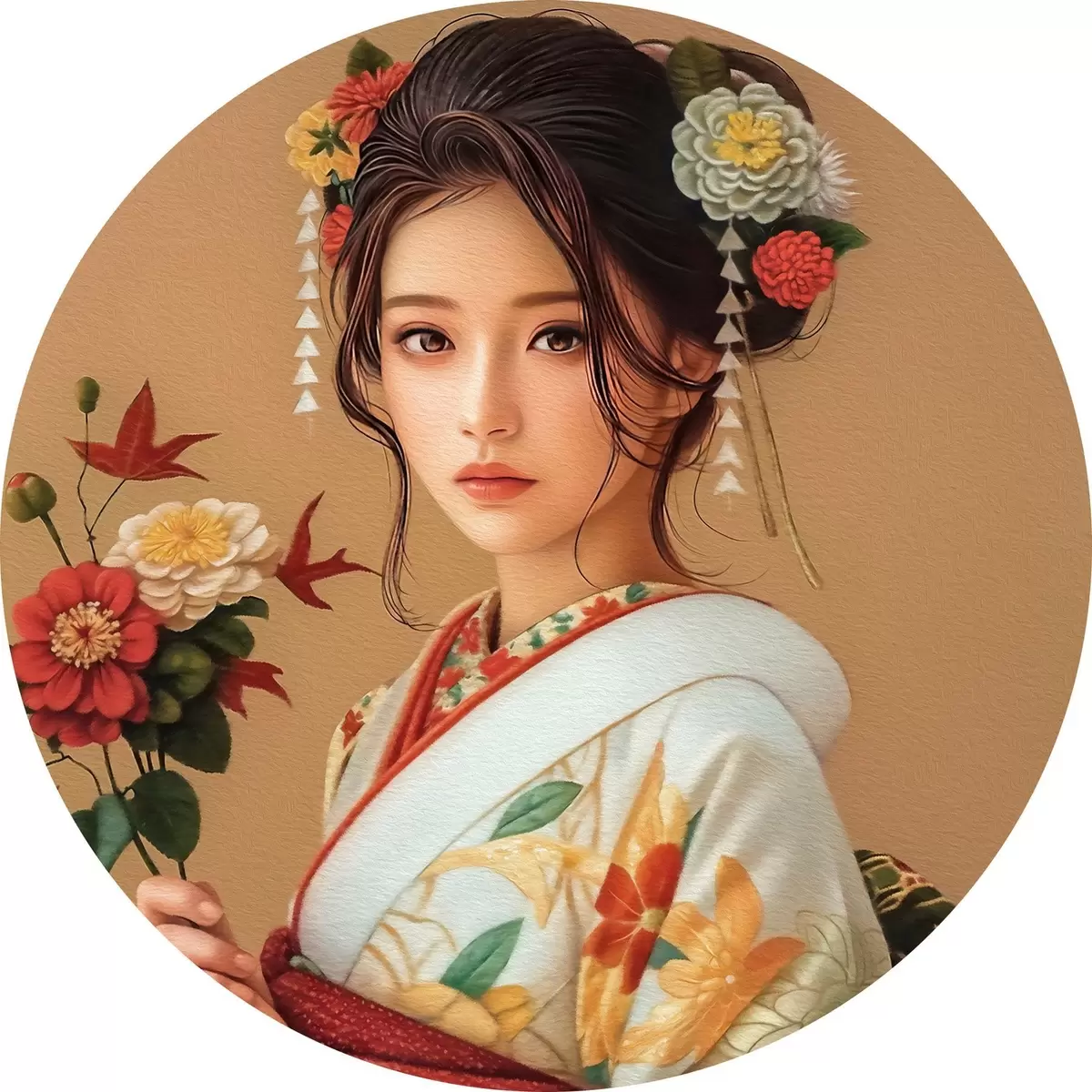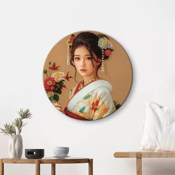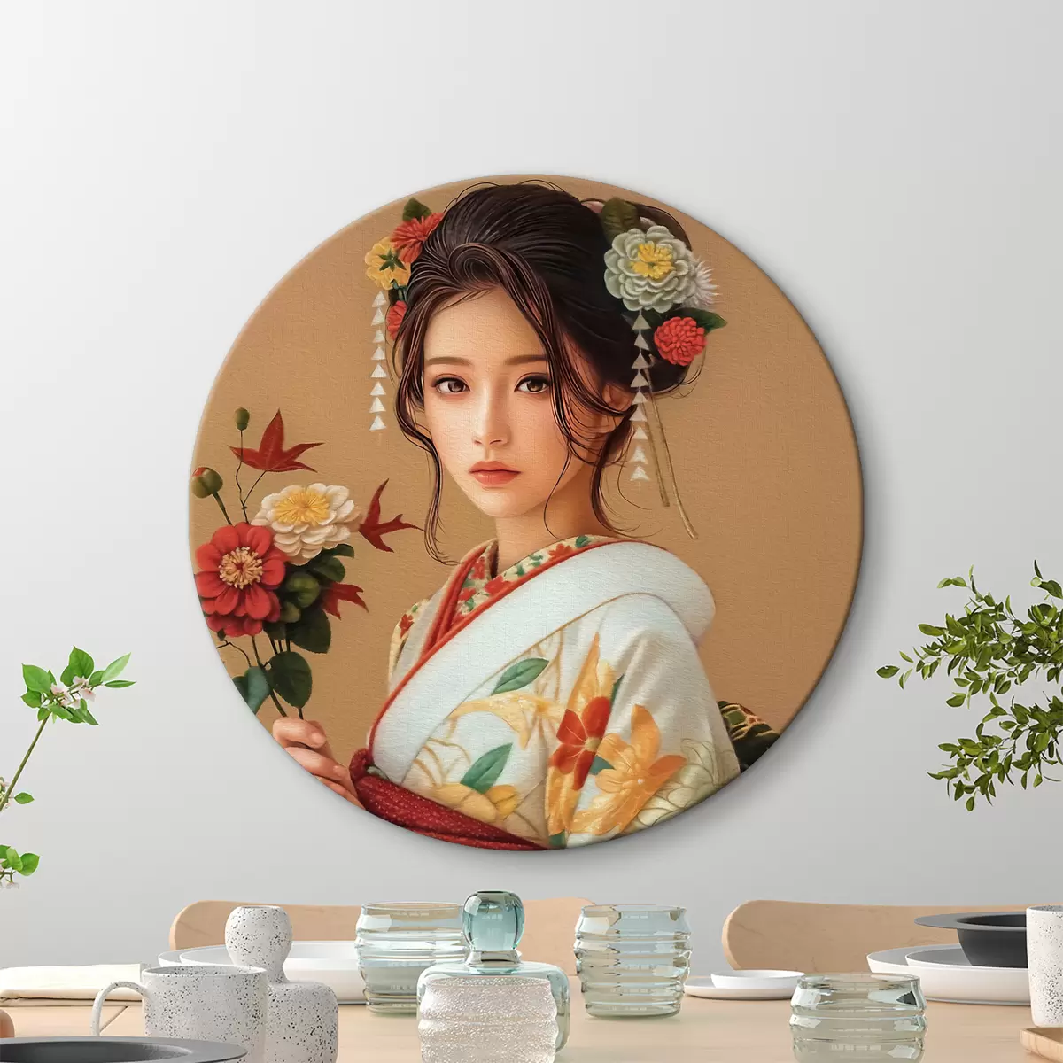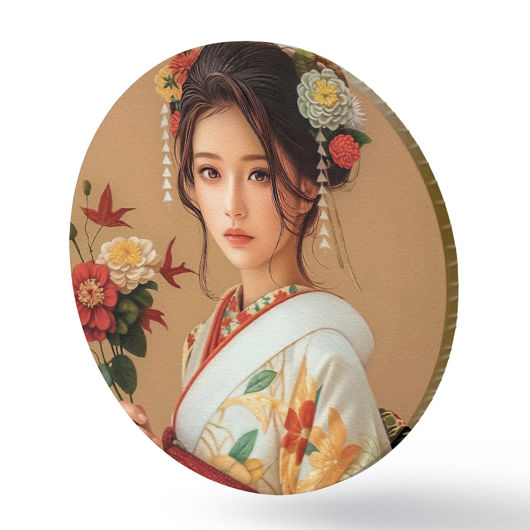 Runde Gemälde Japanerin in einem wunderschönen Kimono r40108