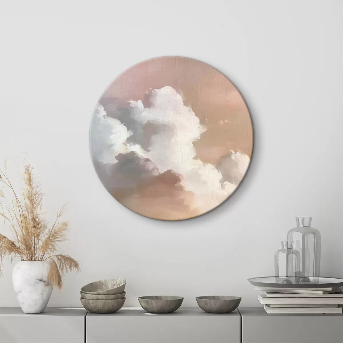 Runde Gemälde Weiße romantische Wolken und Himmel r40113