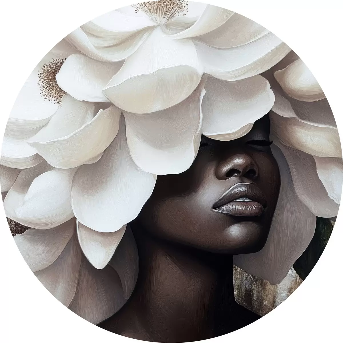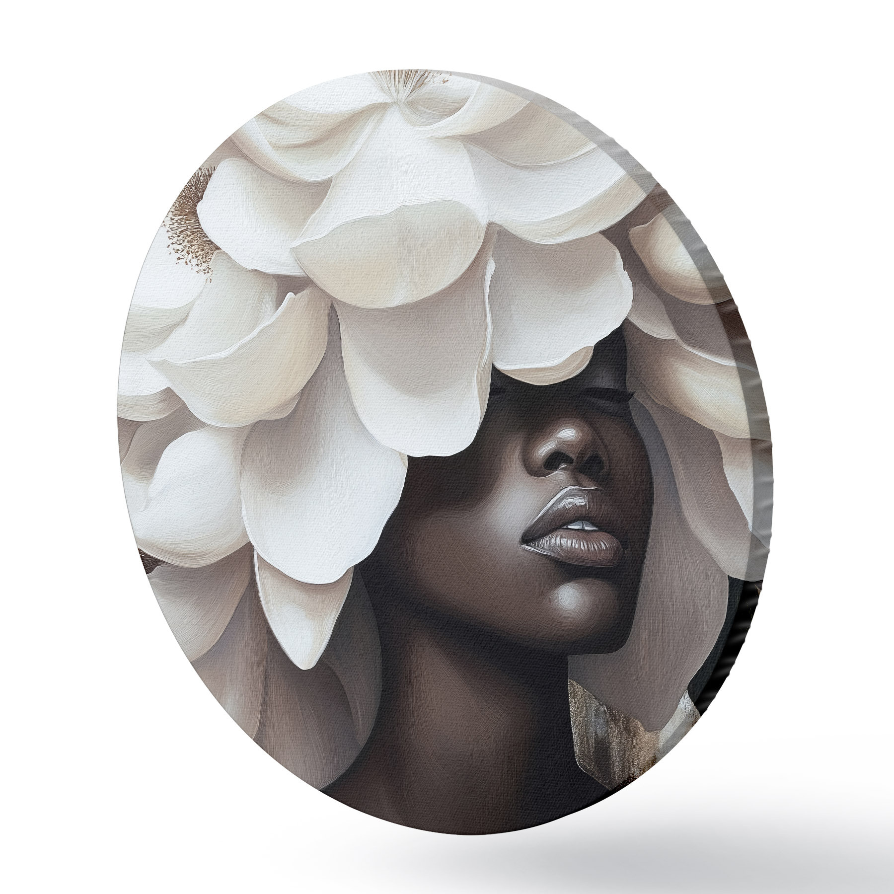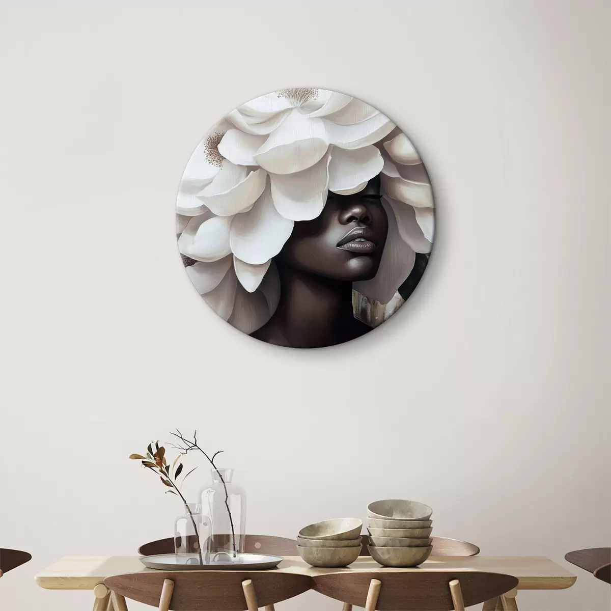Runde Gemälde Eine Frau mit Blumen auf dem Kopf r40123