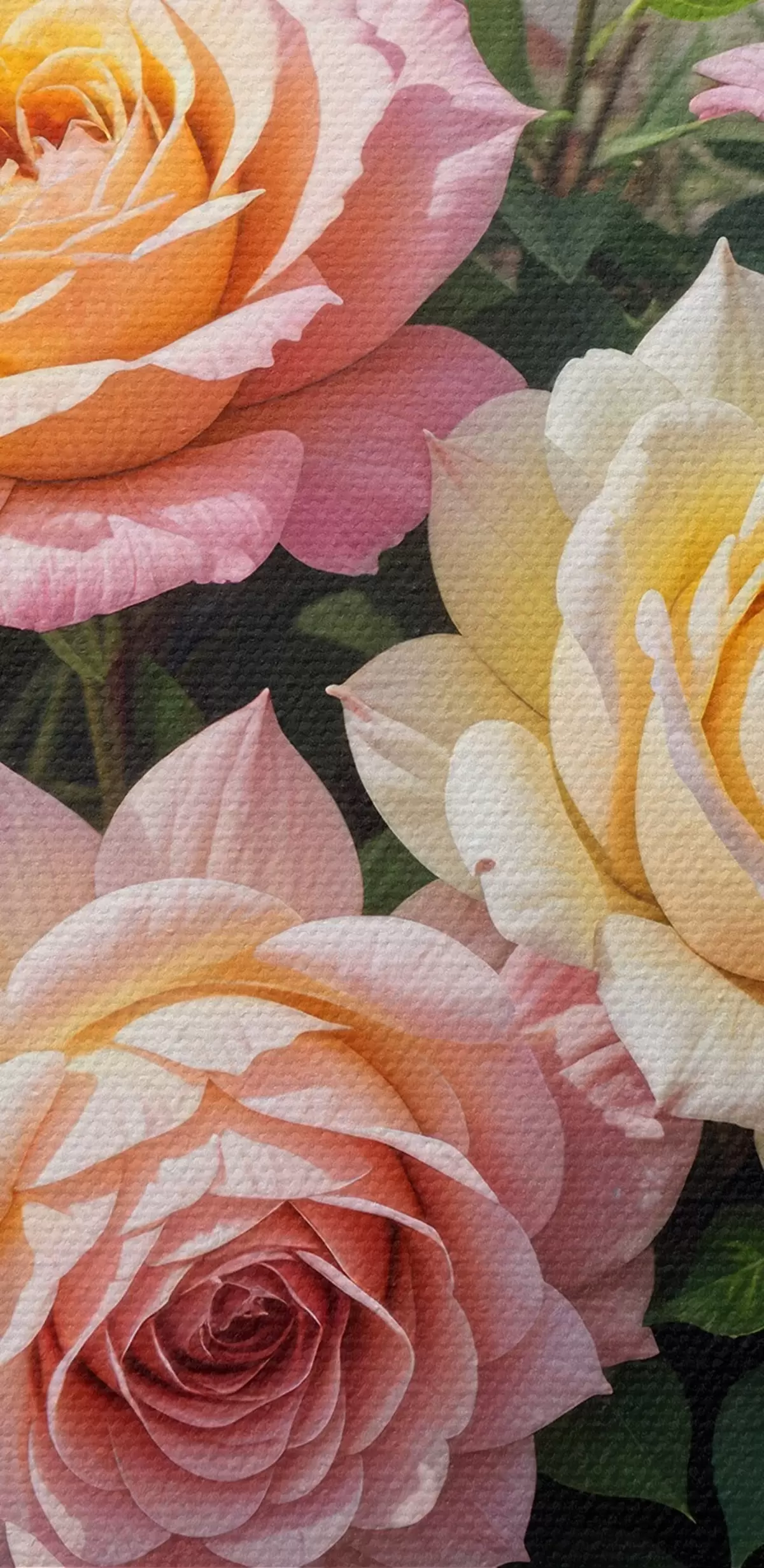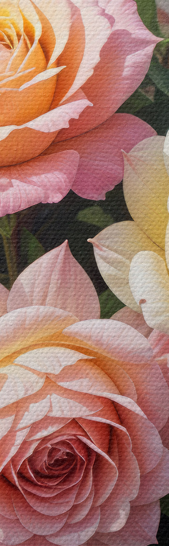 Drei Materialtypen stehen zur Verfügung: Economic Canvas - ein dichtes und haltbares Material für den Digitaldruck, identisch mit Malerleinwand, wasserfeste Oberfläche, realistische Wiedergabe von Details, mittelkörniges Material. Premium Canvas - die Textur ähnelt der einer Malerleinwand (verwobene kleine Fäden). Weiche, detaillierte Wiedergabe des Bildes auf einer matten Oberfläche. Eco-Premium - hochwertiges Gewebe aus 100% Baumwolle. Dank der natürlichen Baumwollfasern ist das Material langlebig und verschleißfest. Hervorragende Farbwiedergabe und Detailtreue.