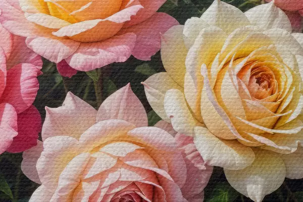 Runde Gemälde Ein Strauß bunter Rosen in verschiedenen Rosa-, Gelb- und Orangetönen, arrangiert mit grünen Blättern r40149