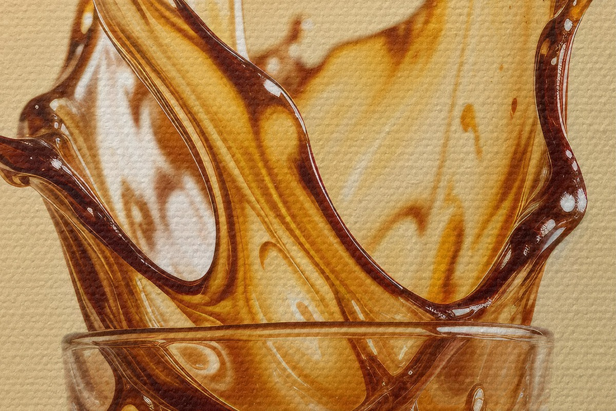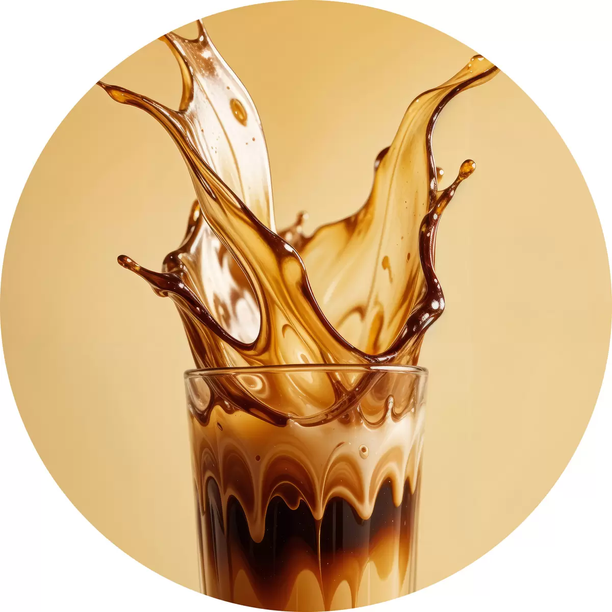 Bild Ein mit Kaffee gefülltes Glas mit einem dramatischen Spritzeffekt, der ein abstraktes und dynamisches Bild erzeugt Nr r40165