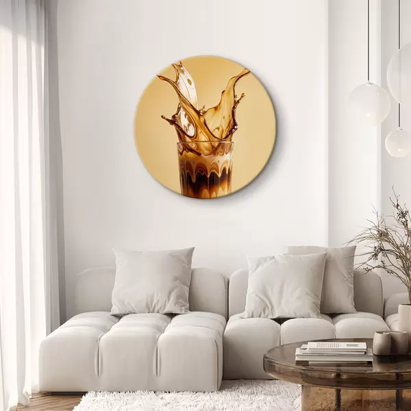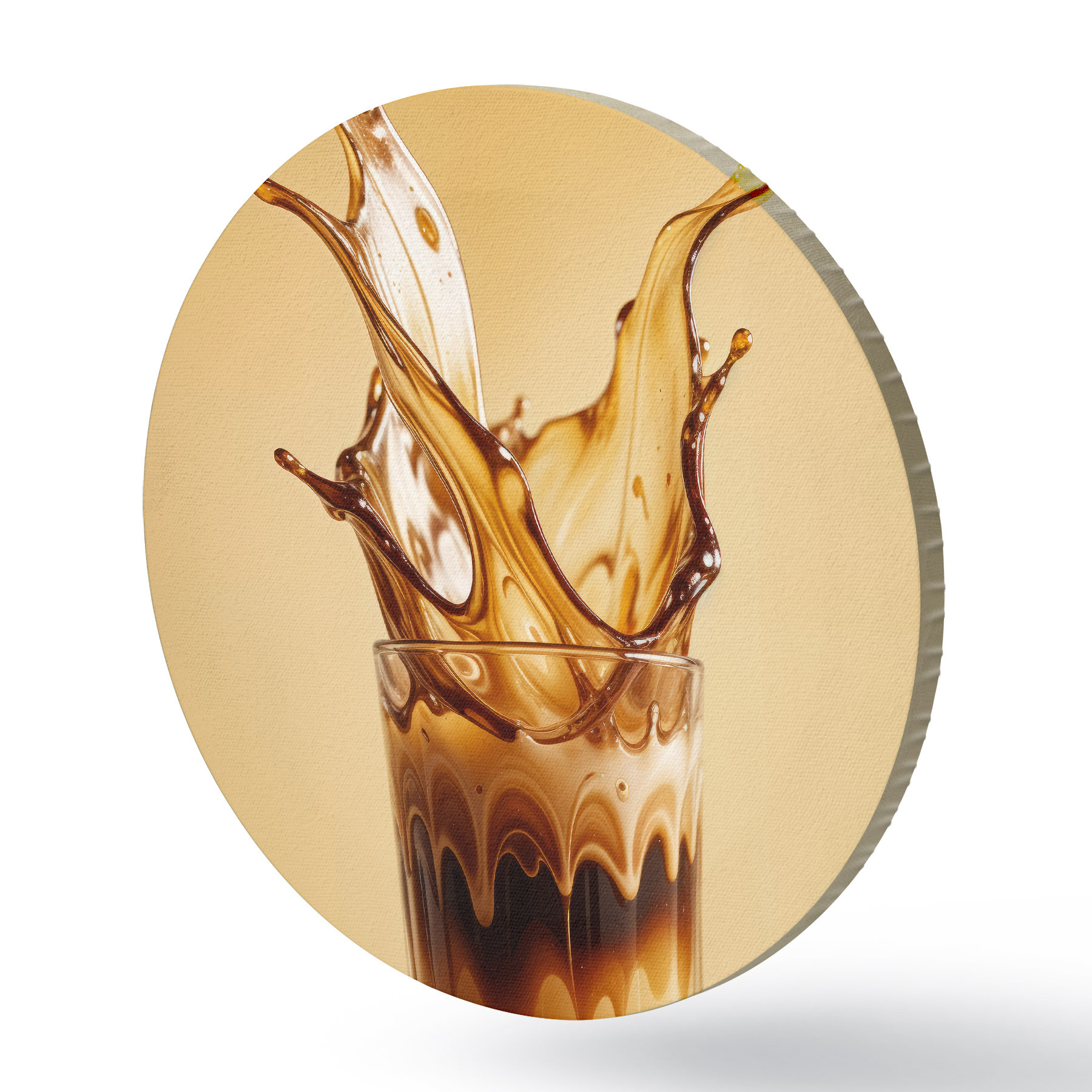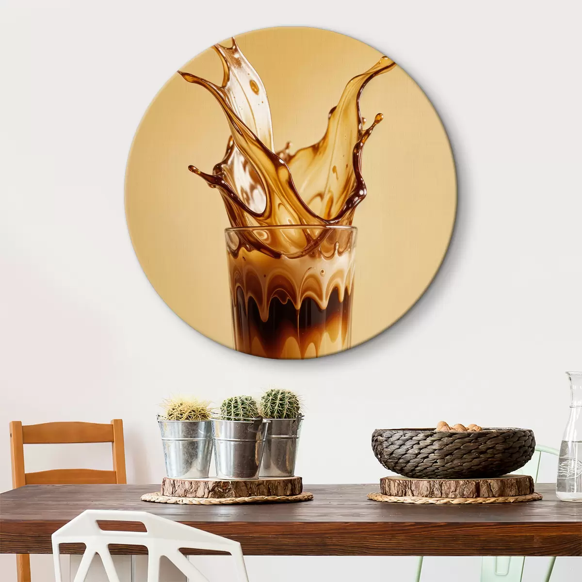Runde Gemälde Ein mit Kaffee gefülltes Glas mit einem dramatischen Spritzeffekt, der ein abstraktes und dynamisches Bild erzeugt r40165