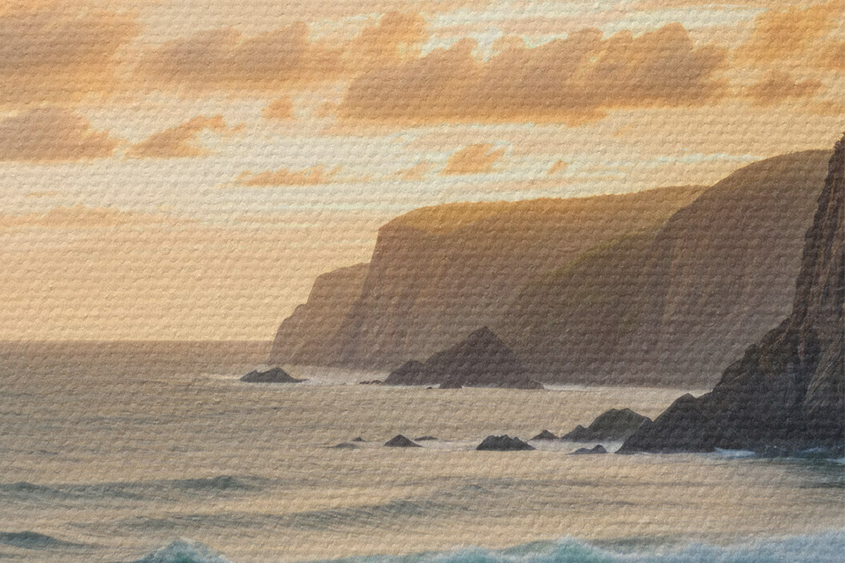 Drei Materialtypen stehen zur Verfügung: Economic Canvas - ein dichtes und haltbares Material für den Digitaldruck, identisch mit Malerleinwand, wasserfeste Oberfläche, realistische Wiedergabe von Details, mittelkörniges Material. Premium Canvas - die Textur ähnelt der einer Malerleinwand (verwobene kleine Fäden). Weiche, detaillierte Wiedergabe des Bildes auf einer matten Oberfläche. Eco-Premium - hochwertiges Gewebe aus 100% Baumwolle. Dank der natürlichen Baumwollfasern ist das Material langlebig und verschleißfest. Hervorragende Farbwiedergabe und Detailtreue.