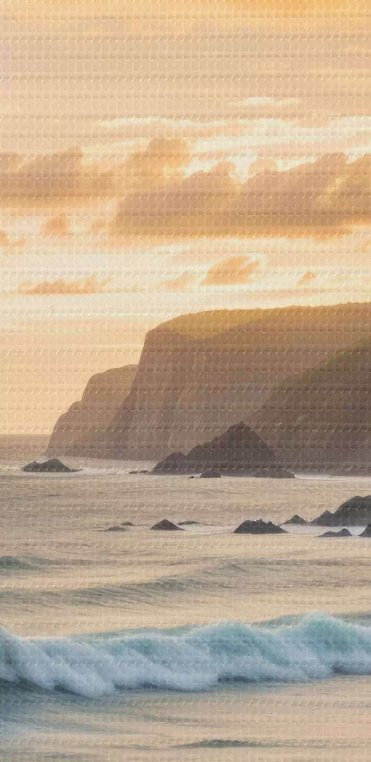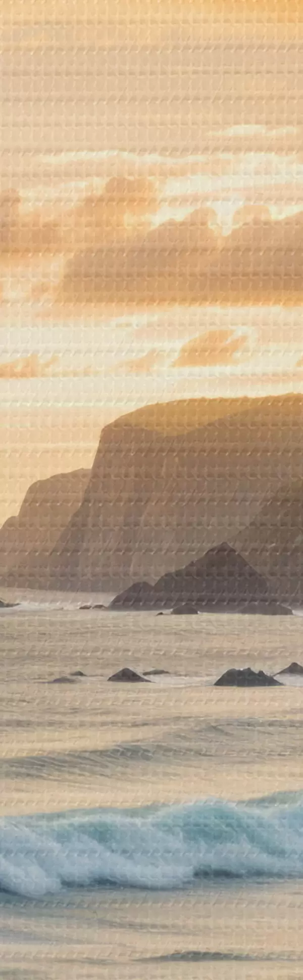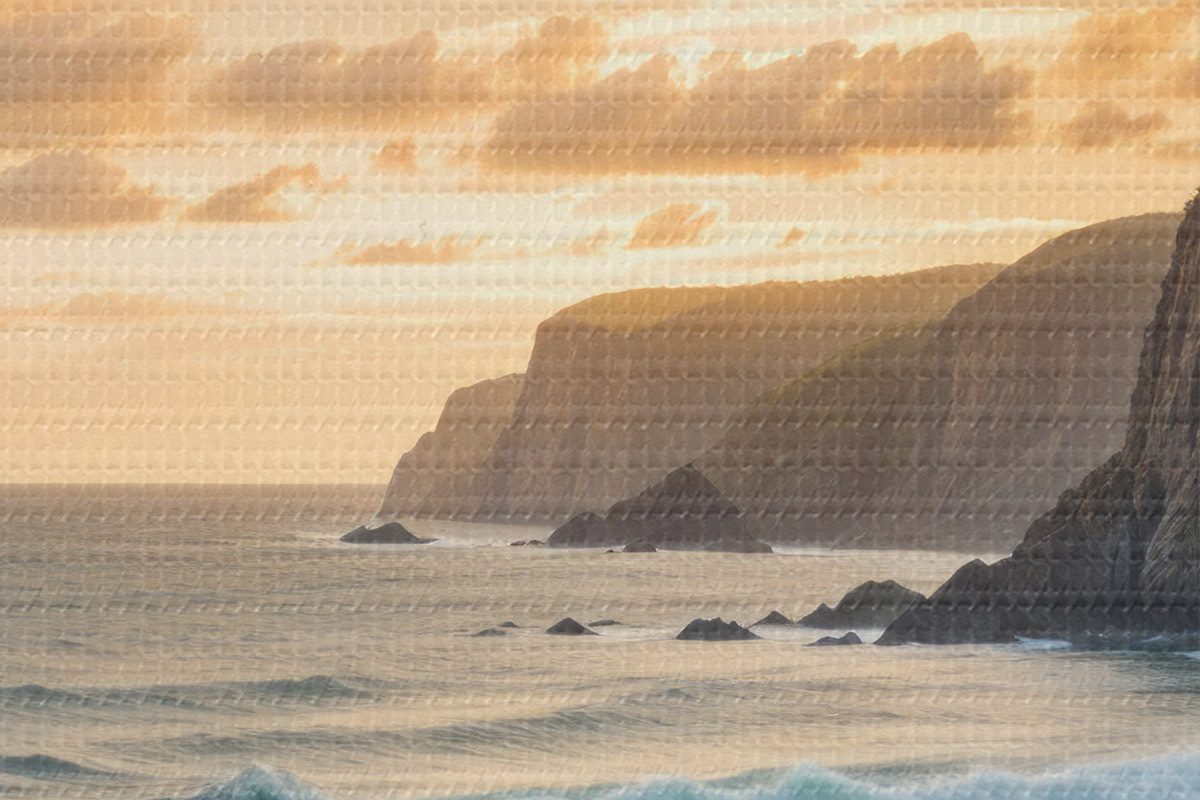 Bild Eine malerische Küstenlandschaft mit dramatischen Klippen, tosenden Wellen und einem farbenfrohen Sonnenuntergangshimmel Nr r40176