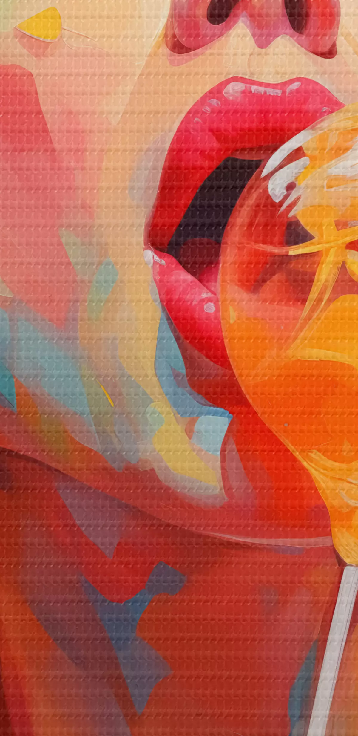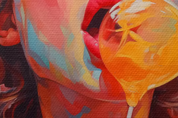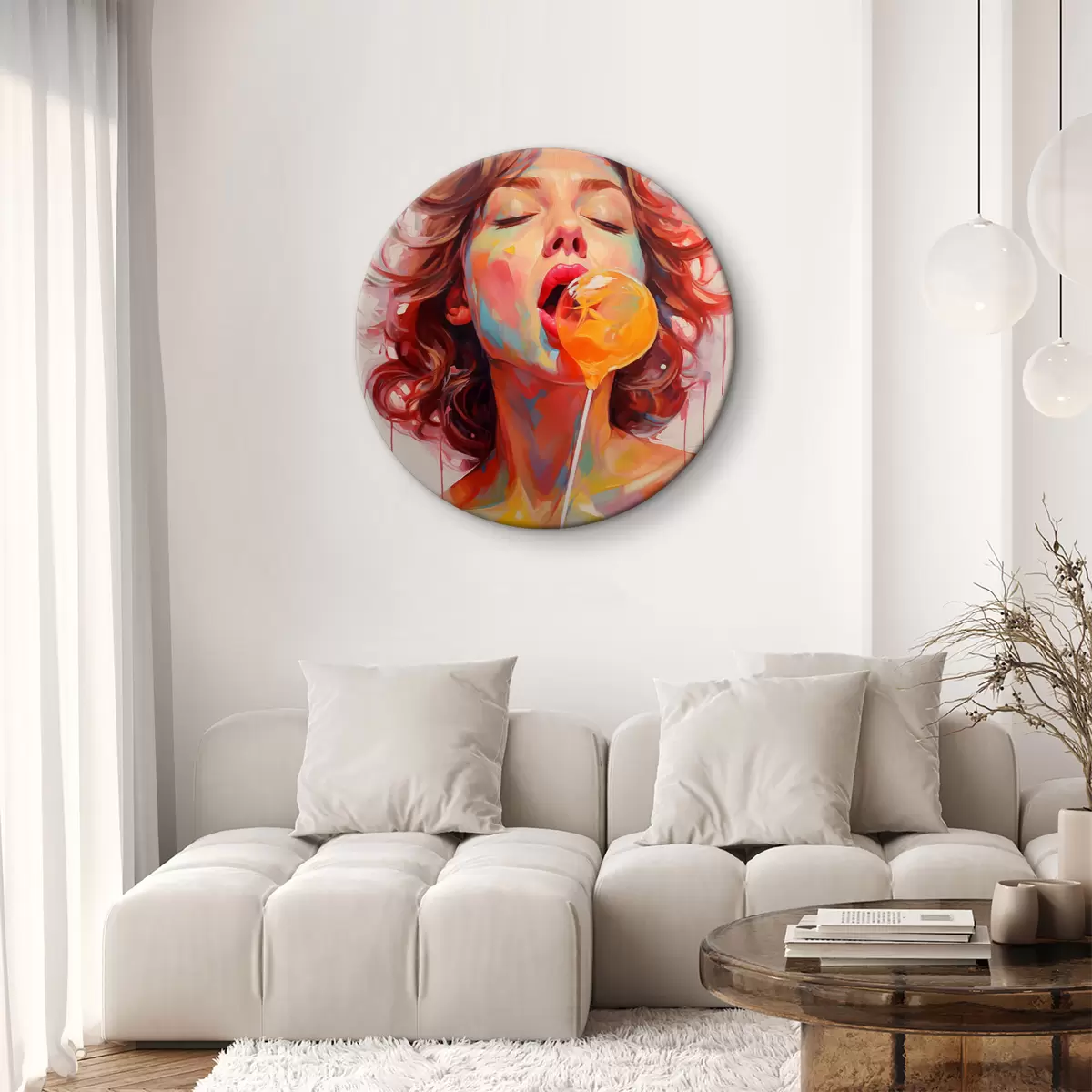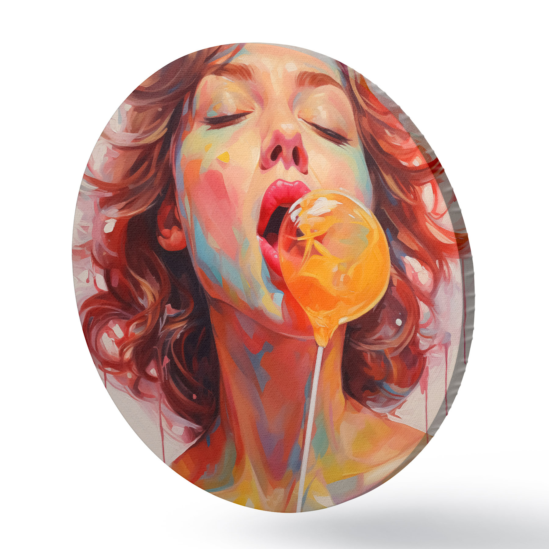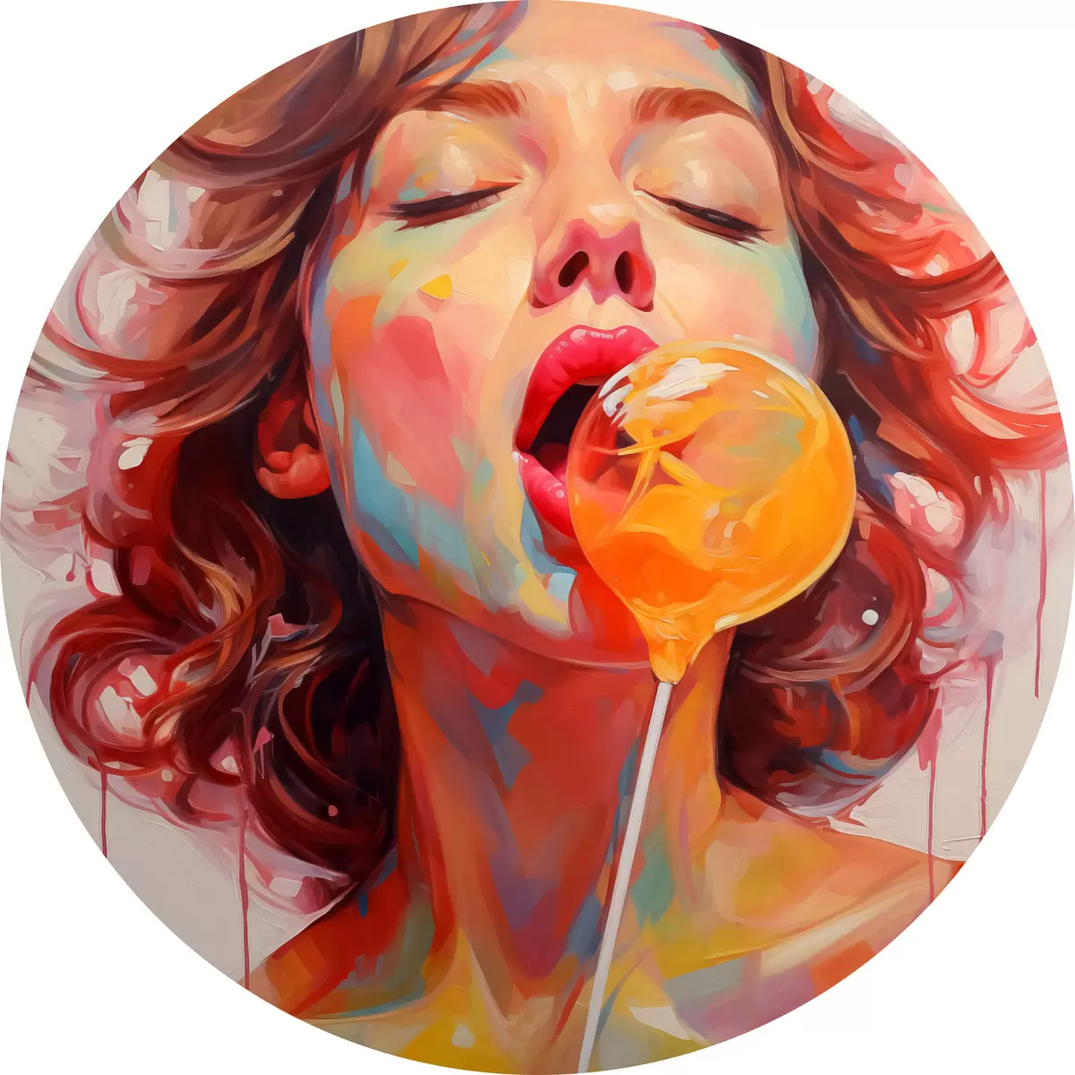 Runde Gemälde Mädchen mit lockigem Haar in leuchtenden Farben leckt Lutscher r40213