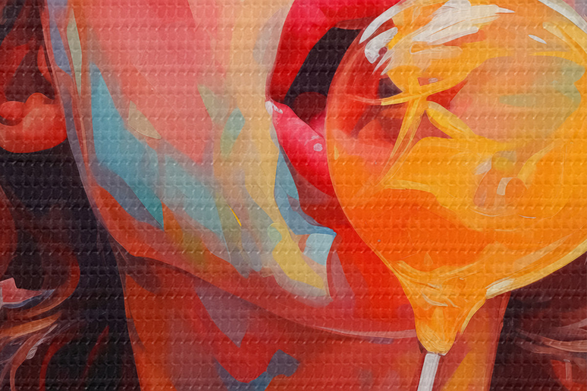 Bild Mädchen mit lockigem Haar in leuchtenden Farben leckt Lutscher Nr r40213
