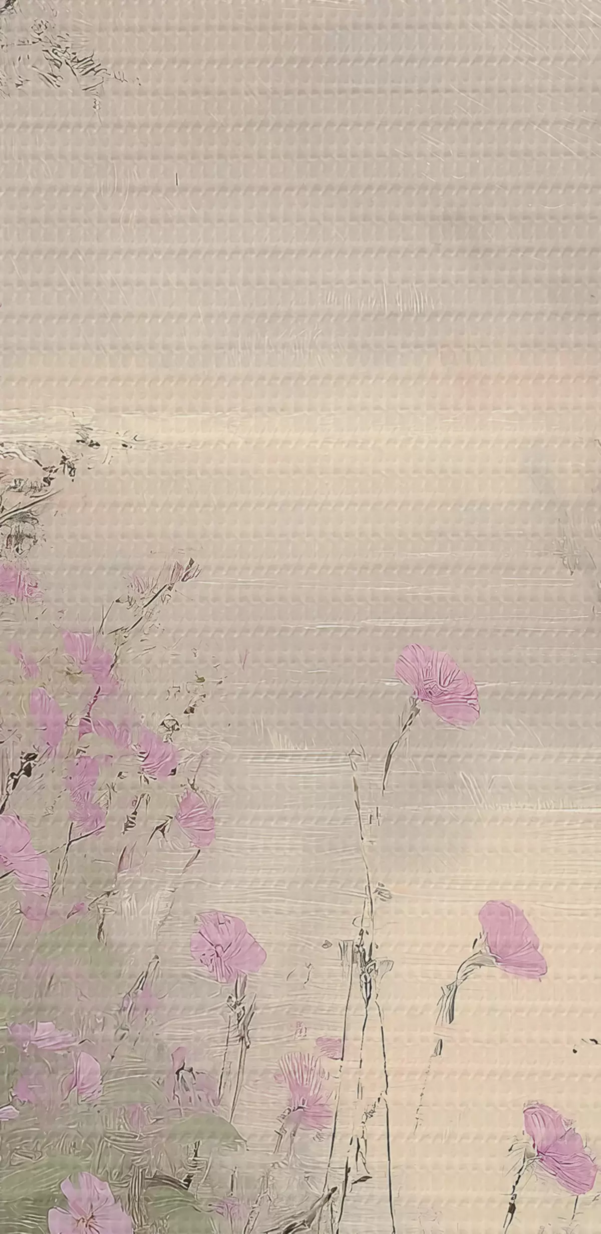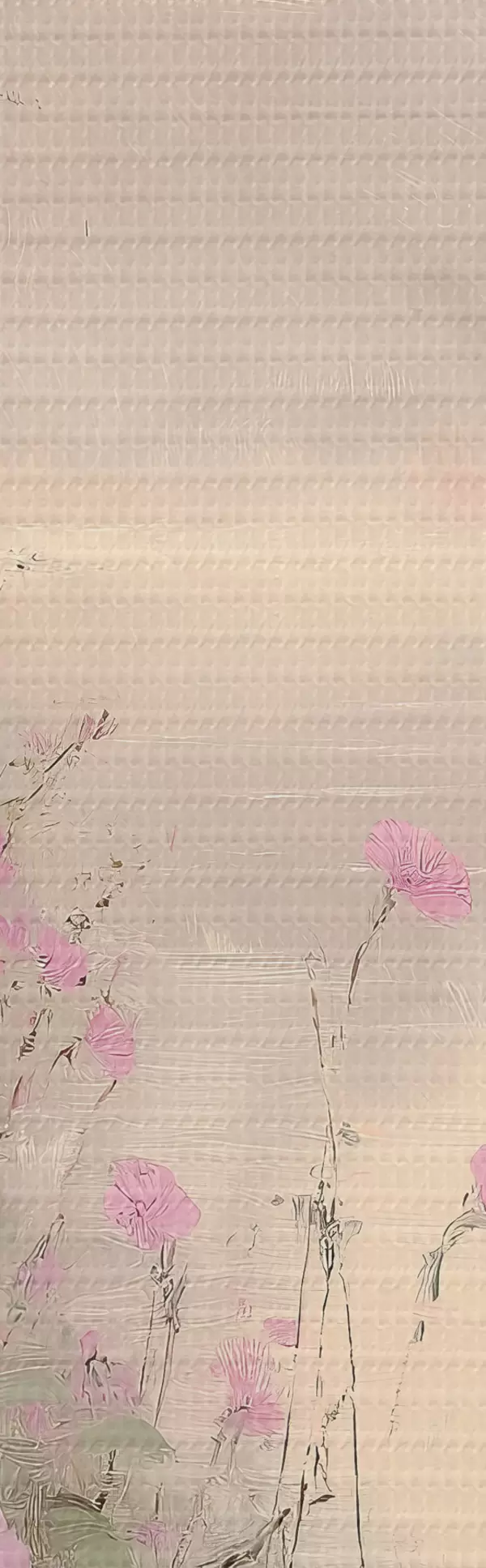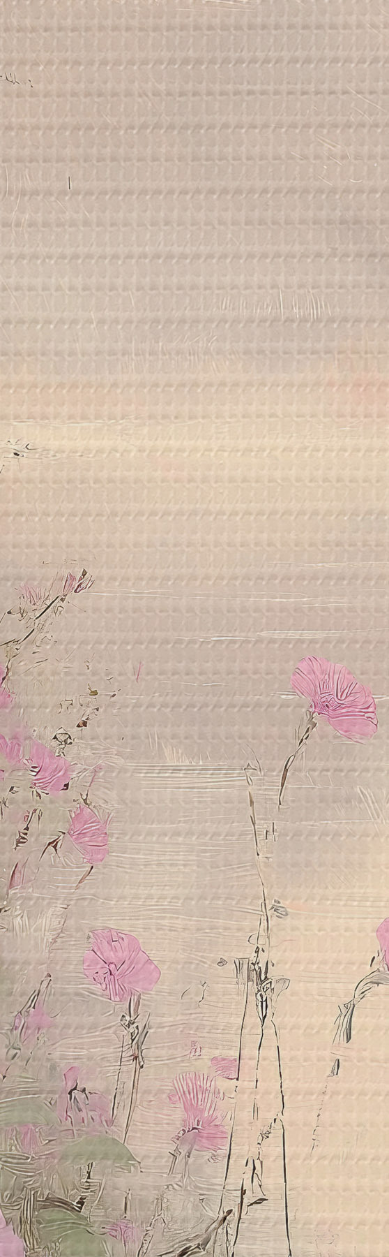 Bild See mit rosa Blumen, Sonnenaufgang, Ölzeichnung, pastellbeige Farben, Nebel Nr r40229