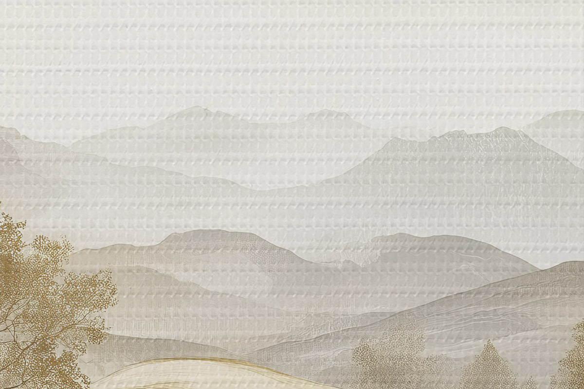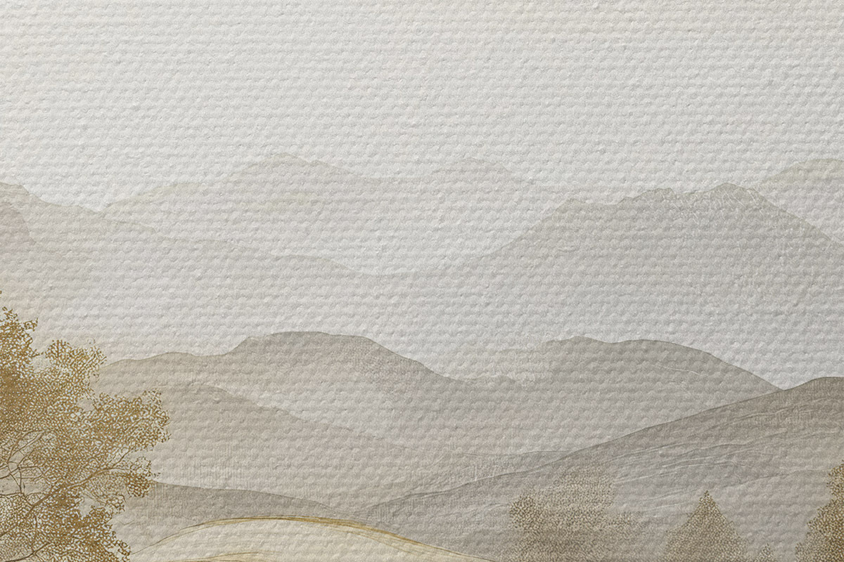 Bild Naturlandschaft in beiger Farbpalette, Wiese, Bäume, Aquarellzeichnung Nr r40231