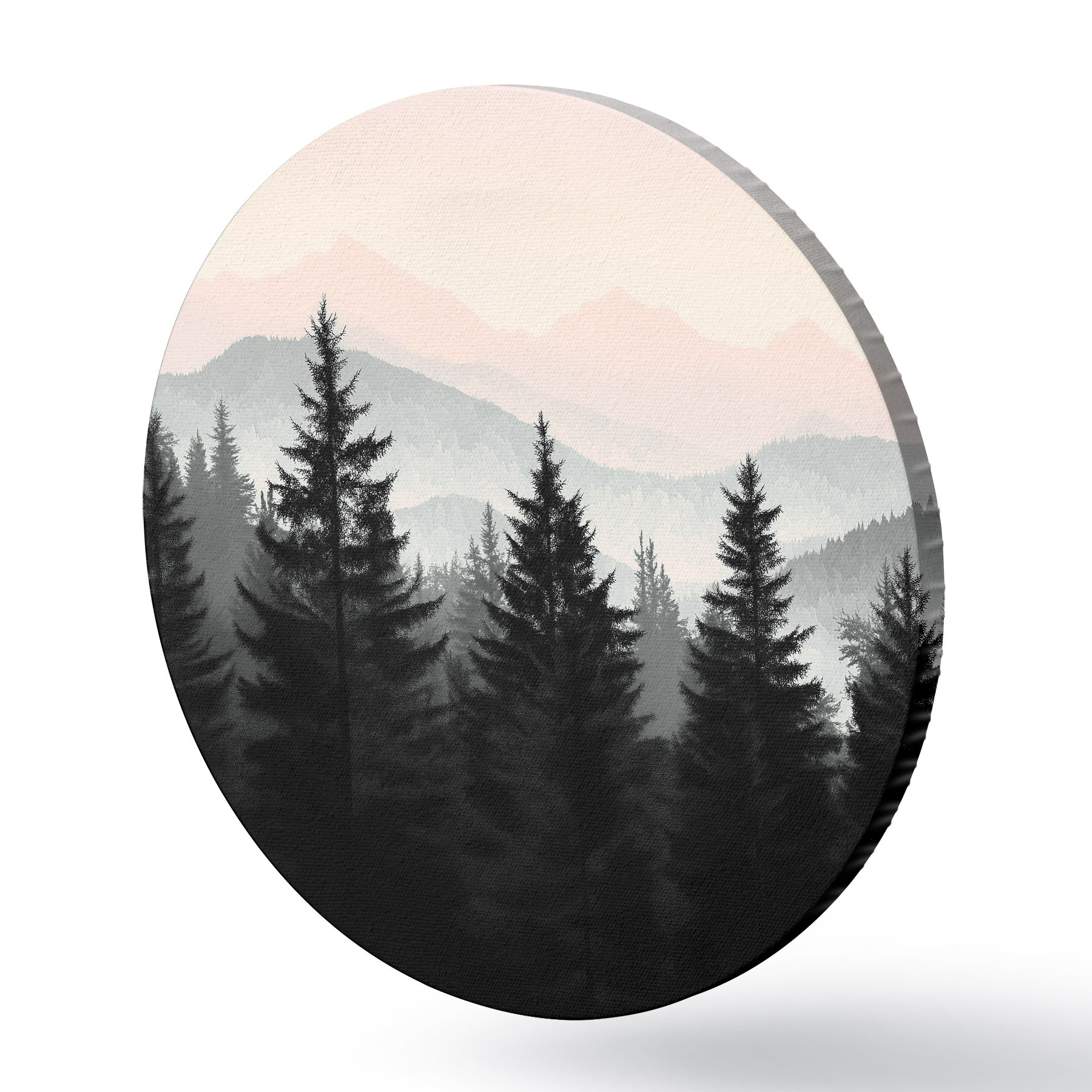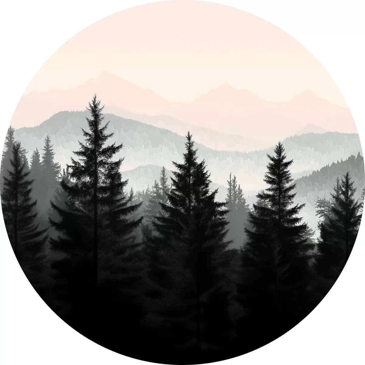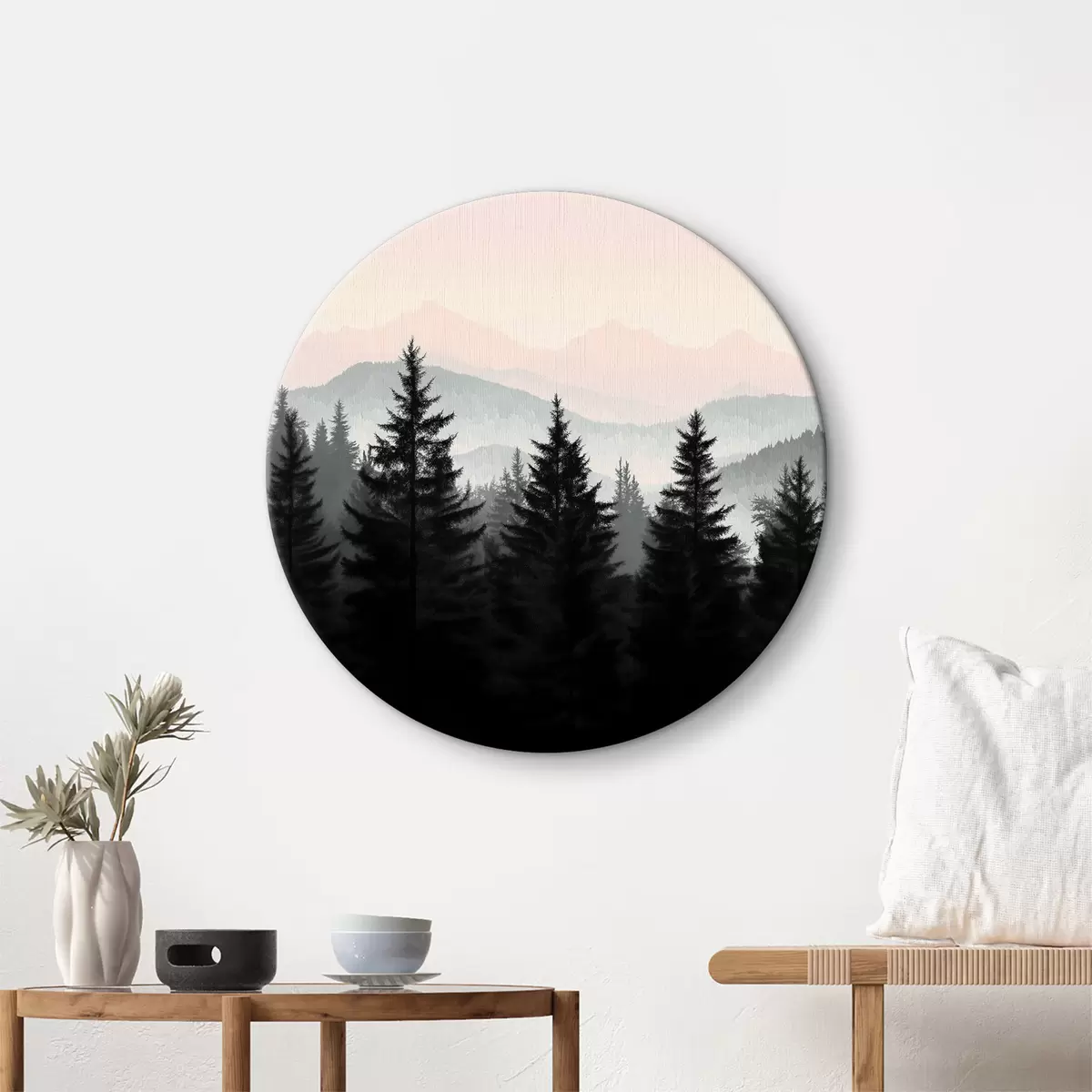 Runde Gemälde Wald mit Bergen im Hintergrund r40281