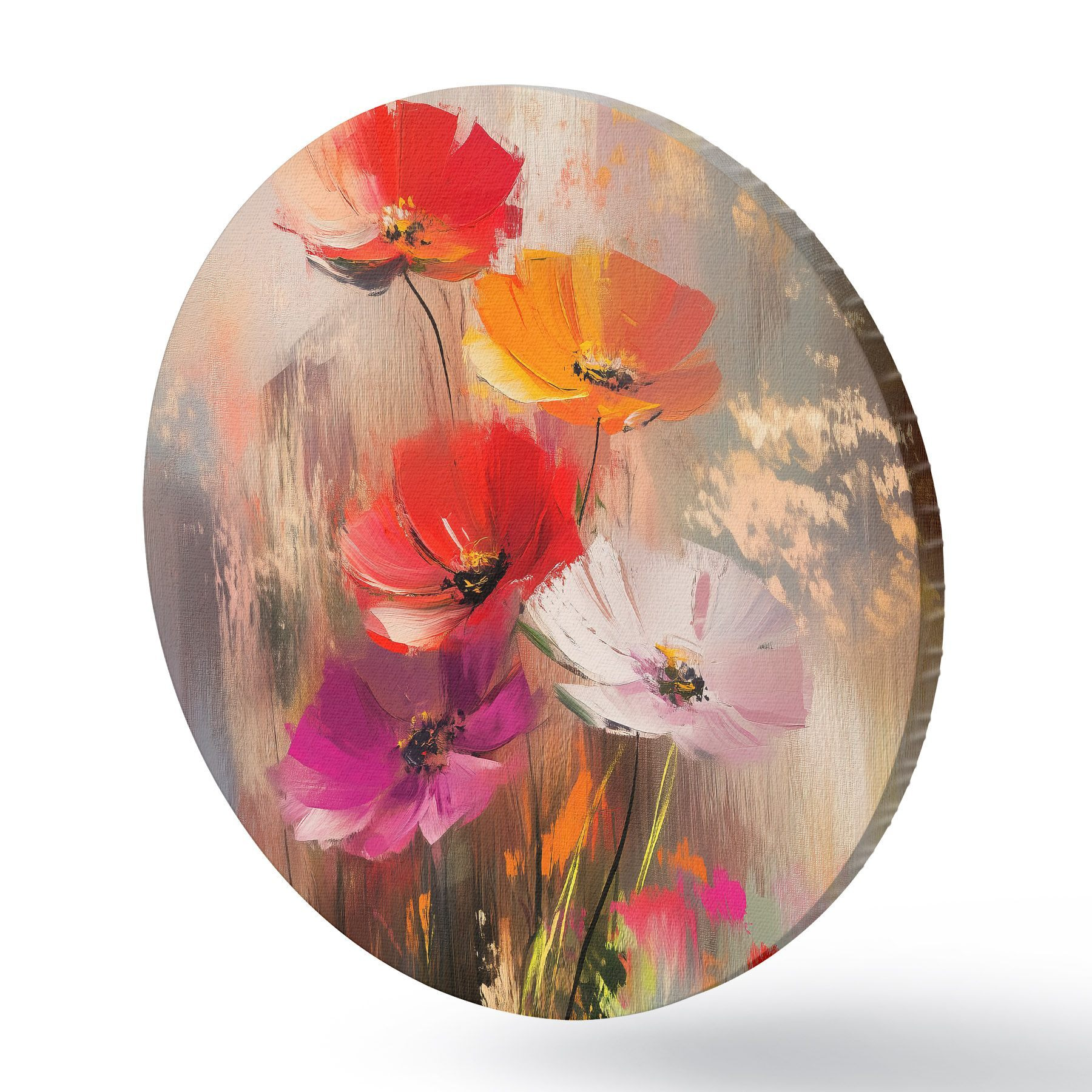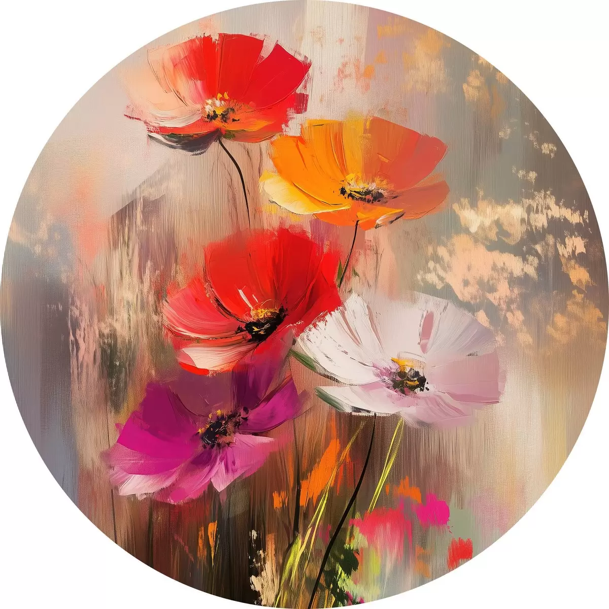 Runde Gemälde Abstrakte helle Blumen mit Pinselstrichen r40283