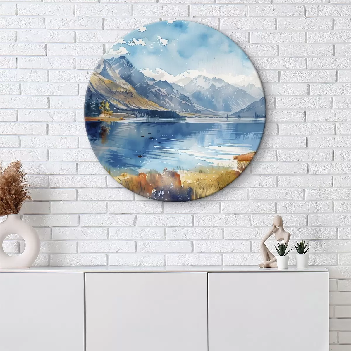 Runde Gemälde Aquarell Berglandschaft, Herbstfarben r40308