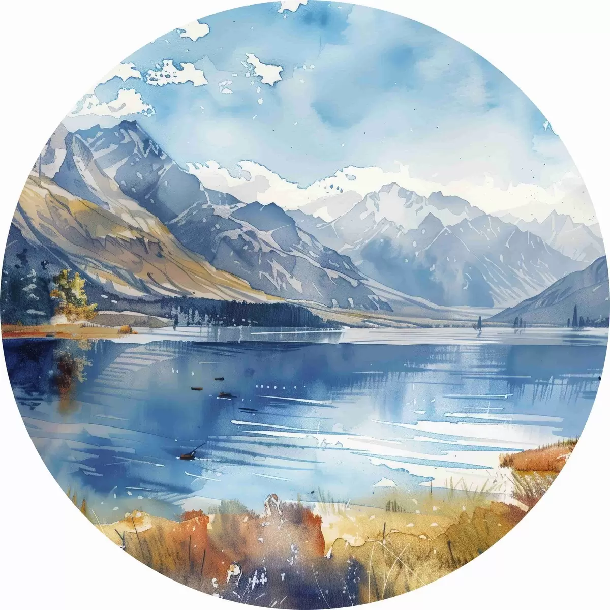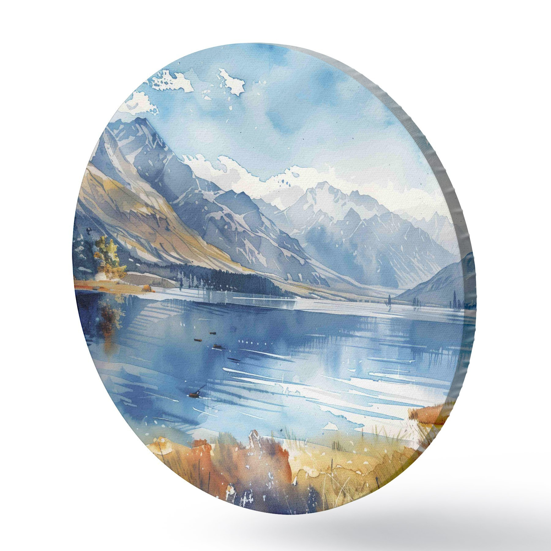 Runde Gemälde Aquarell Berglandschaft, Herbstfarben r40308