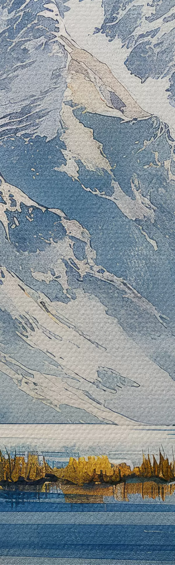 Um die Leinwand auf Keilrahmen zu spannen, ohne das Bild zu beschädigen, verwenden wir ein gespiegeltes Bild.