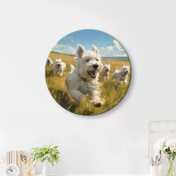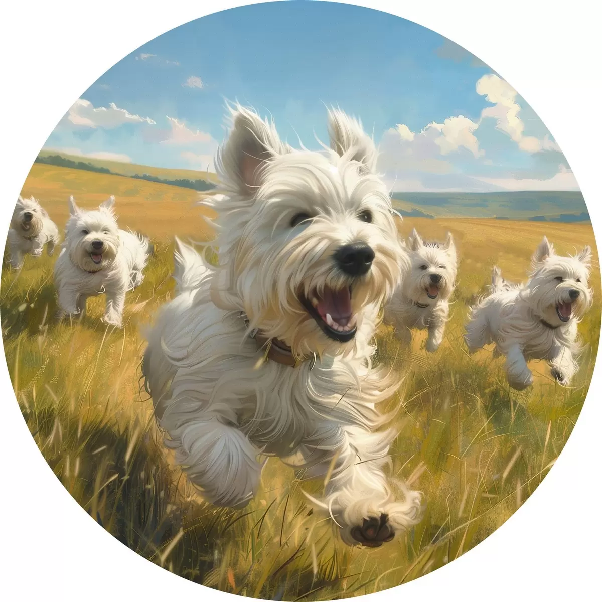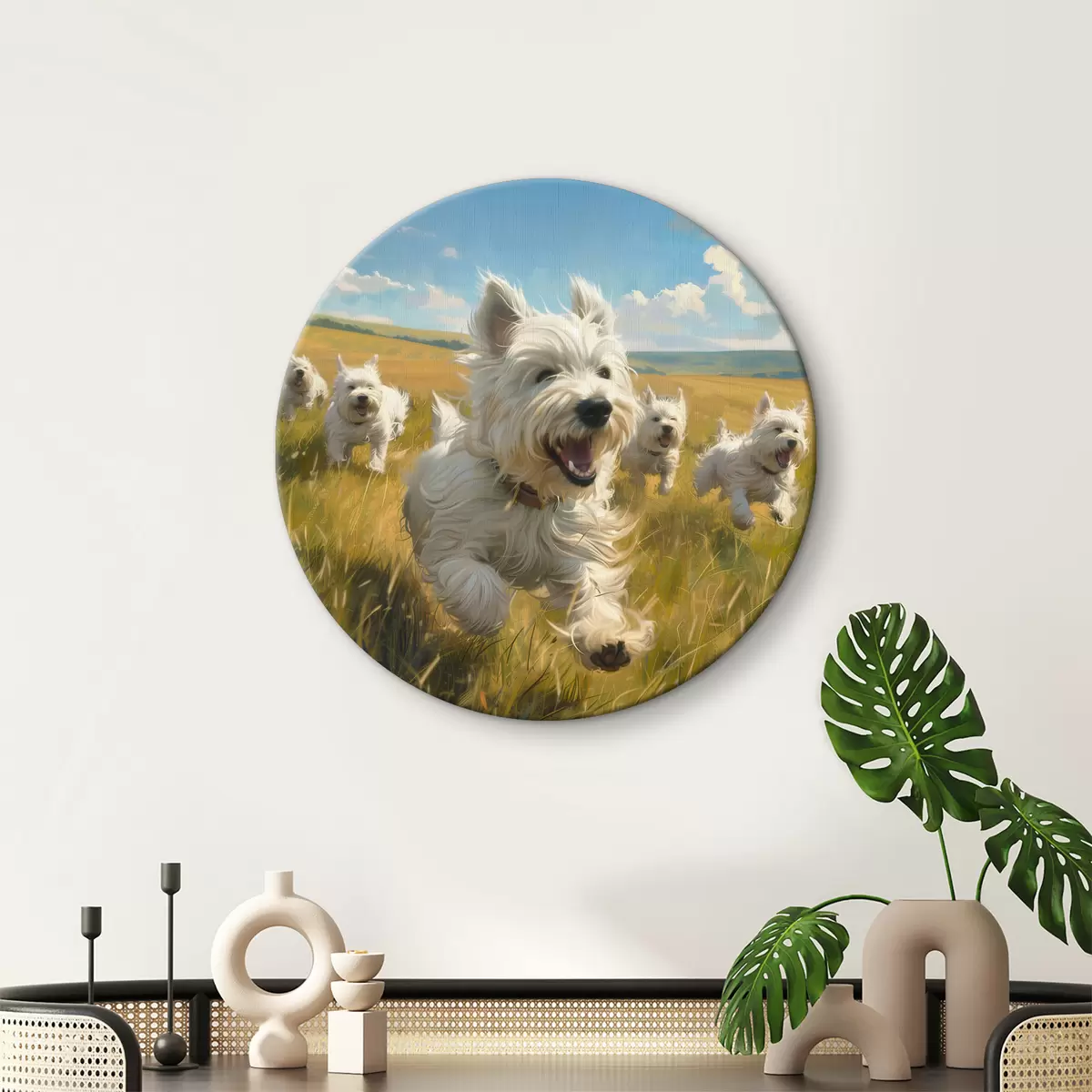 Runde Gemälde Kleine Welpen auf dem Feld r40358