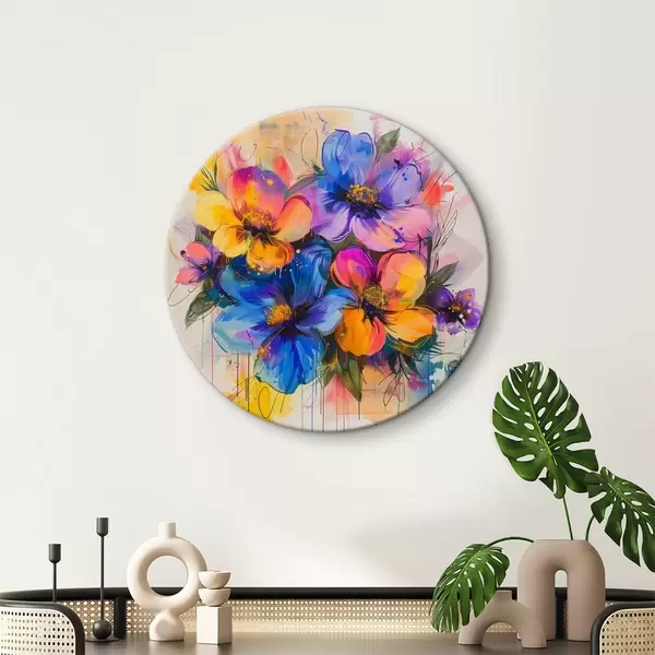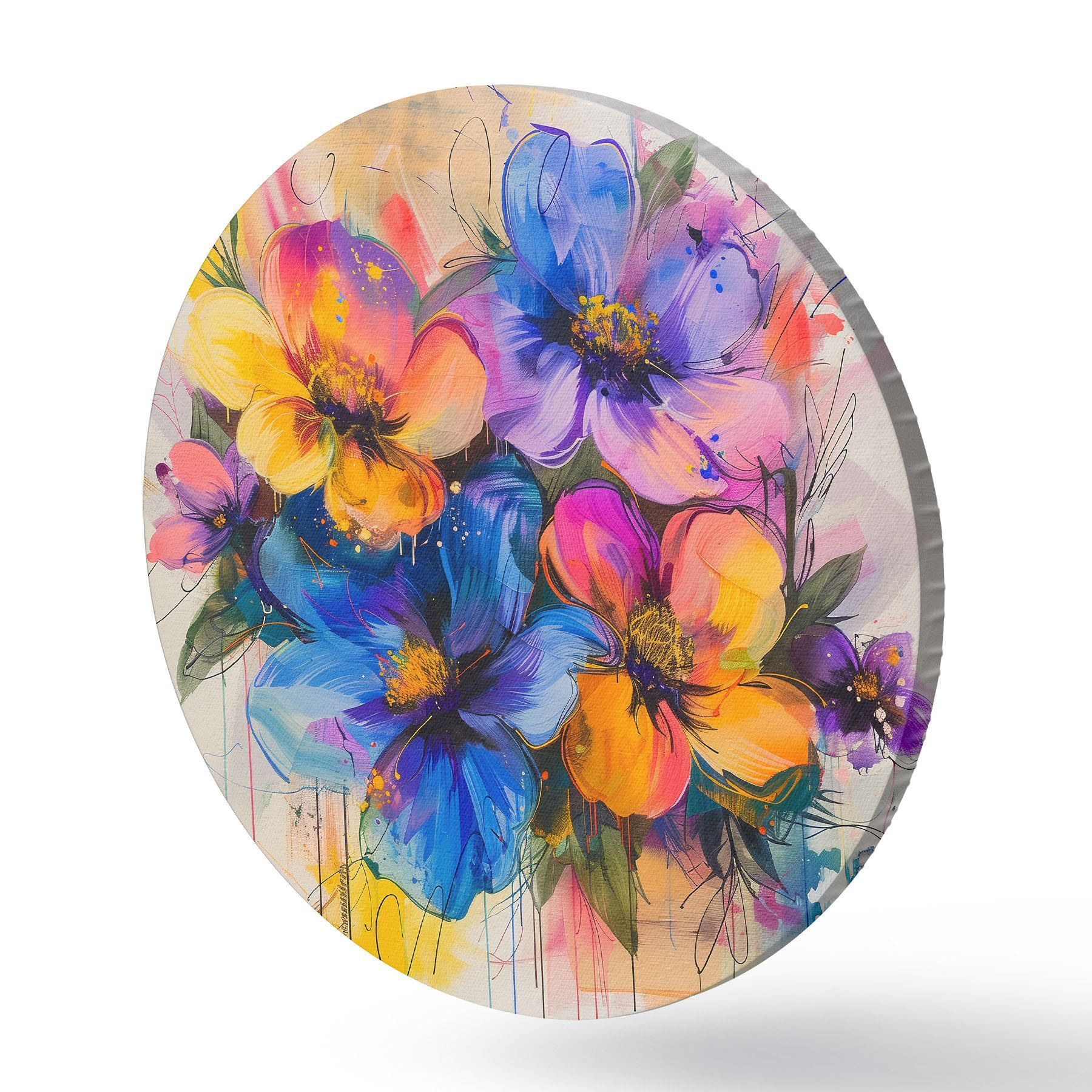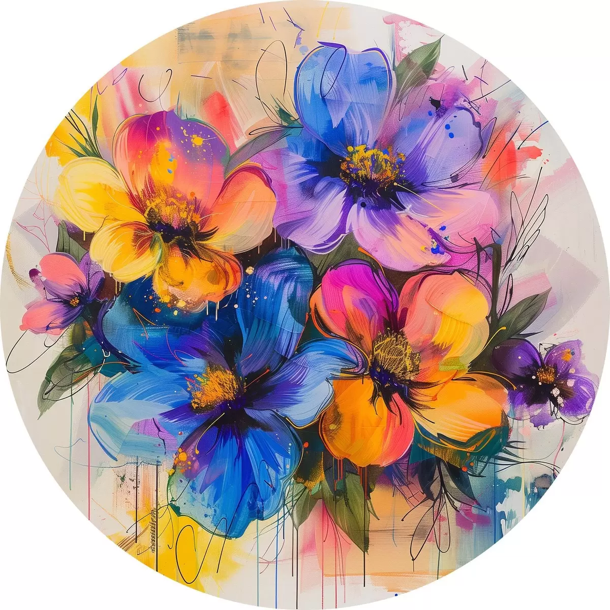 Runde Gemälde Blumen auf abstraktem Hintergrund r40373