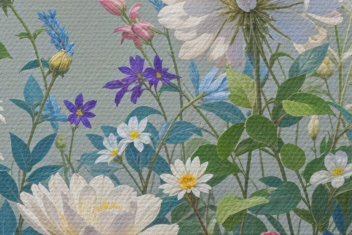 Bild Ein üppiger, lebendiger Garten mit einer Vielzahl bunter Blumen und blühender Pflanzen vor einem grauen Hintergrund Nr r40393