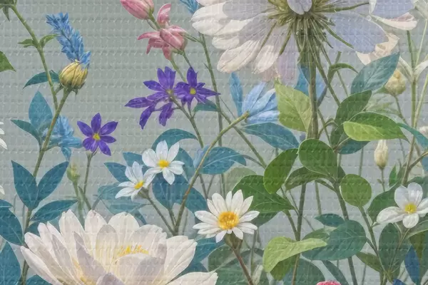 Bild Ein üppiger, lebendiger Garten mit einer Vielzahl bunter Blumen und blühender Pflanzen vor einem grauen Hintergrund Nr r40393