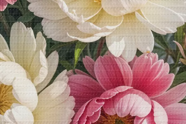 Bild Ein Strauß lebendiger Pfingstrosenblüten in verschiedenen Rosa-, Weiß- und Gelbtönen mit Farbspritzern Nr r40403