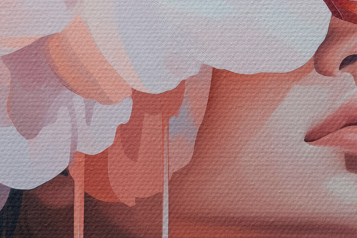 Um die Leinwand auf Keilrahmen zu spannen, ohne das Bild zu beschädigen, verwenden wir ein gespiegeltes Bild.