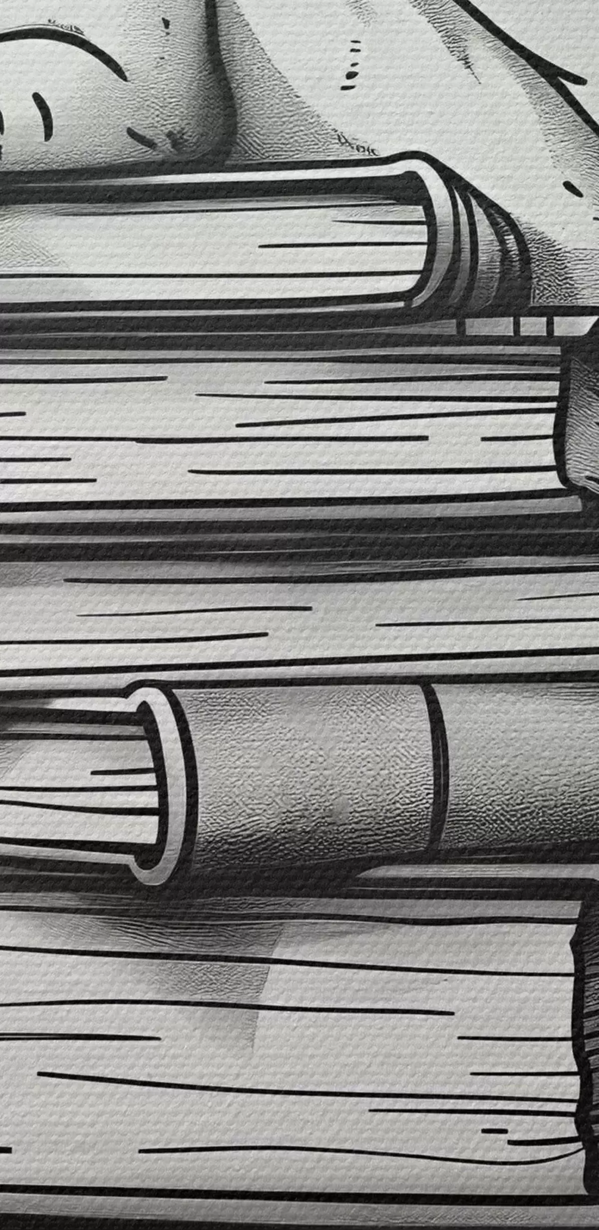 Um die Leinwand auf Keilrahmen zu spannen, ohne das Bild zu beschädigen, verwenden wir ein gespiegeltes Bild.