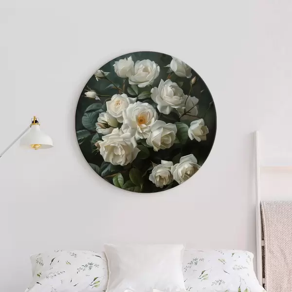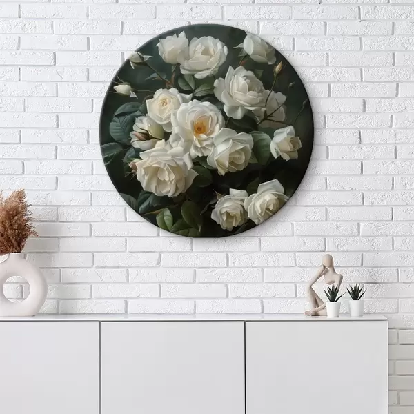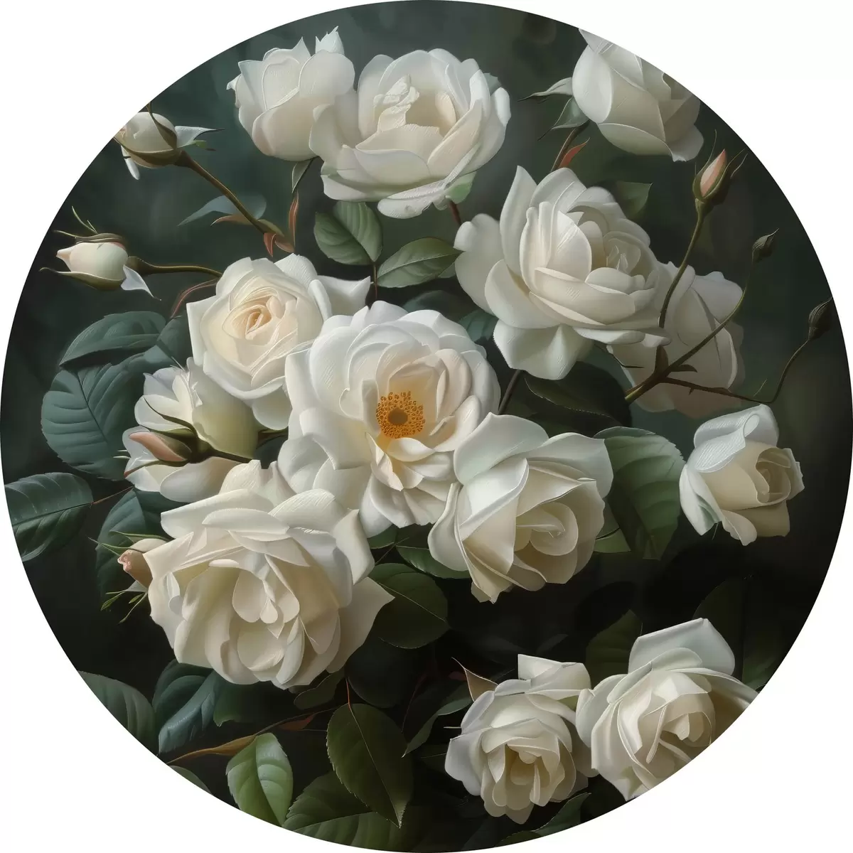 Runde Gemälde Weiße Rosen in einer Vase r40447