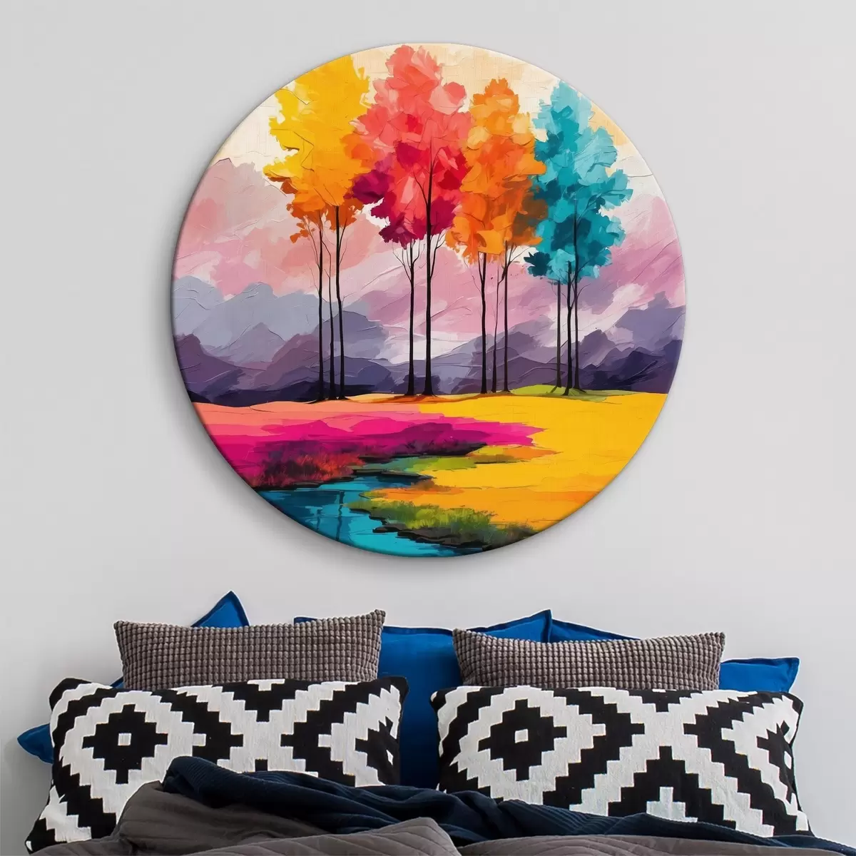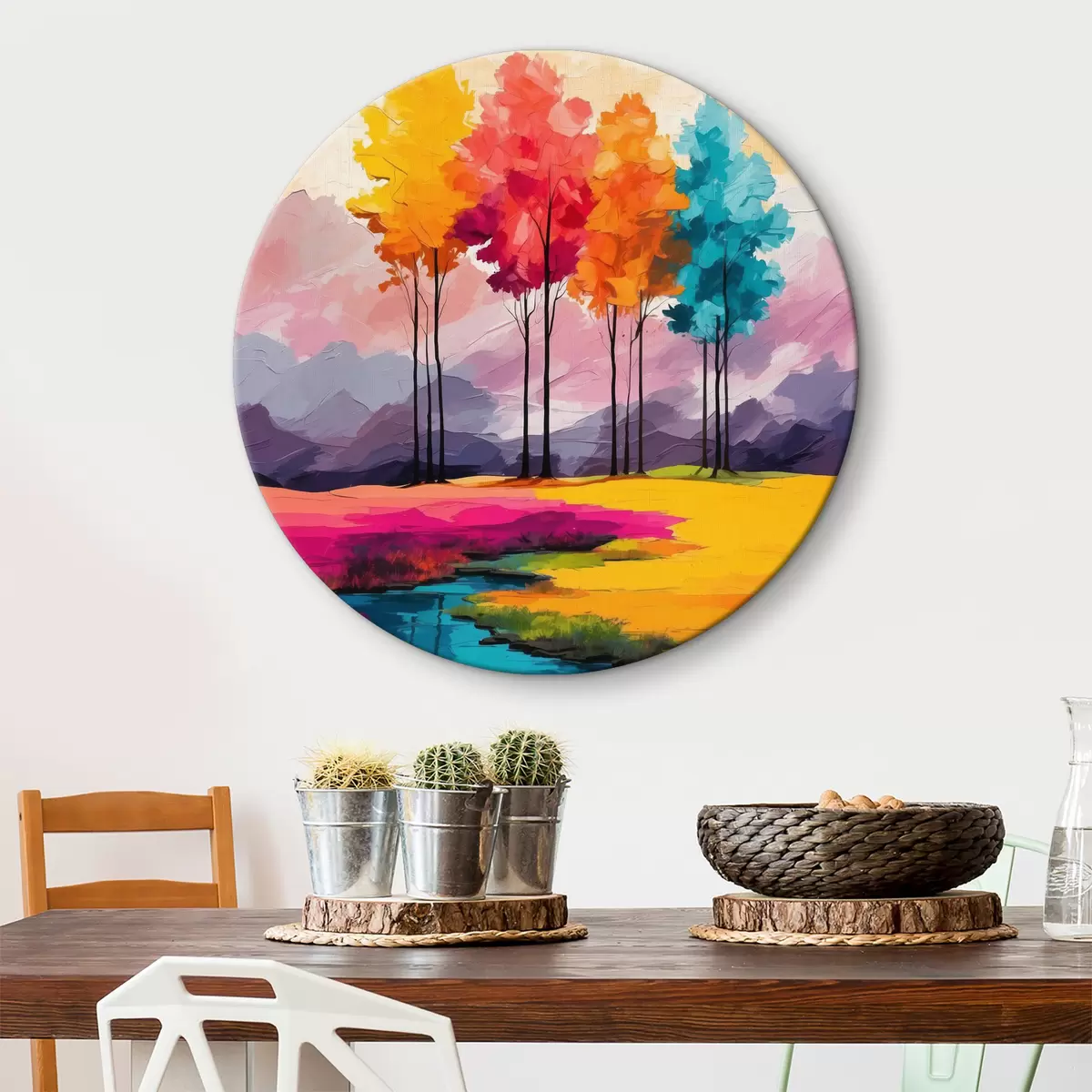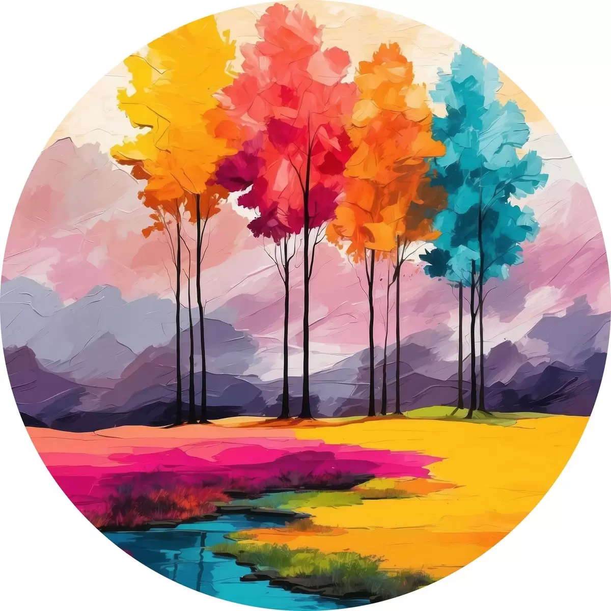 Runde Gemälde Mehrfarbige Acrylbäume r40456