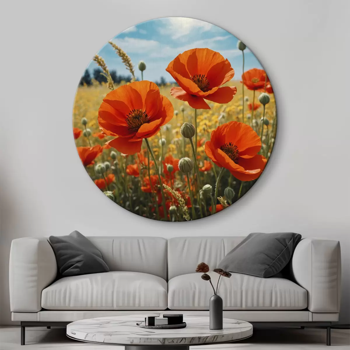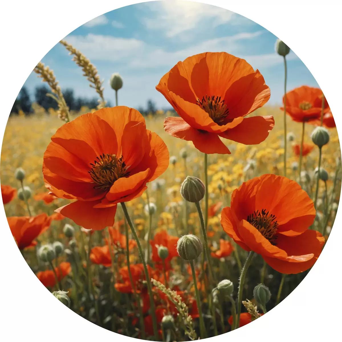 Runde Gemälde Mohnfeld r40467