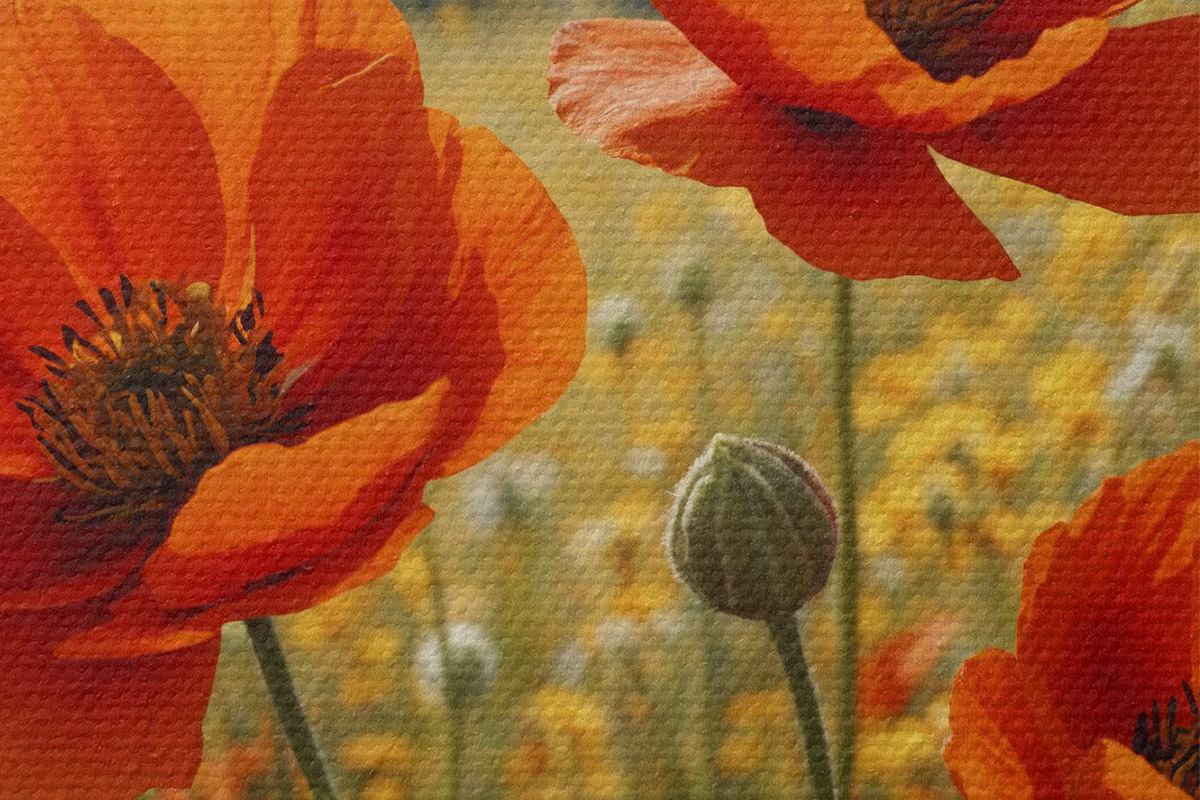 Drei Materialtypen stehen zur Verfügung: Economic Canvas - ein dichtes und haltbares Material für den Digitaldruck, identisch mit Malerleinwand, wasserfeste Oberfläche, realistische Wiedergabe von Details, mittelkörniges Material. Premium Canvas - die Textur ähnelt der einer Malerleinwand (verwobene kleine Fäden). Weiche, detaillierte Wiedergabe des Bildes auf einer matten Oberfläche. Eco-Premium - hochwertiges Gewebe aus 100% Baumwolle. Dank der natürlichen Baumwollfasern ist das Material langlebig und verschleißfest. Hervorragende Farbwiedergabe und Detailtreue.