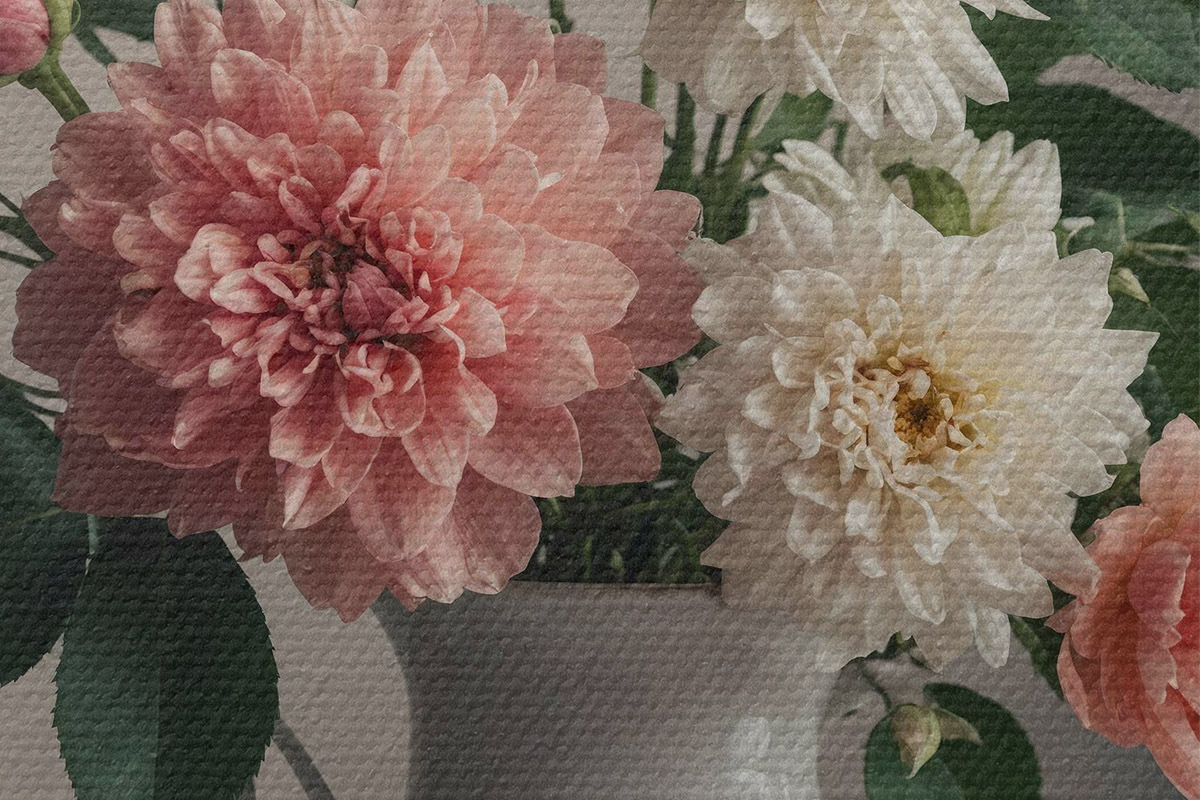Drei Materialtypen stehen zur Verfügung: Economic Canvas - ein dichtes und haltbares Material für den Digitaldruck, identisch mit Malerleinwand, wasserfeste Oberfläche, realistische Wiedergabe von Details, mittelkörniges Material. Premium Canvas - die Textur ähnelt der einer Malerleinwand (verwobene kleine Fäden). Weiche, detaillierte Wiedergabe des Bildes auf einer matten Oberfläche. Eco-Premium - hochwertiges Gewebe aus 100% Baumwolle. Dank der natürlichen Baumwollfasern ist das Material langlebig und verschleißfest. Hervorragende Farbwiedergabe und Detailtreue.