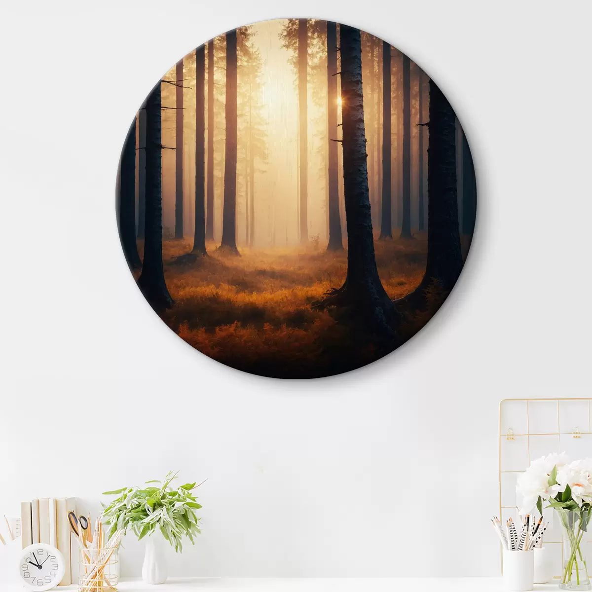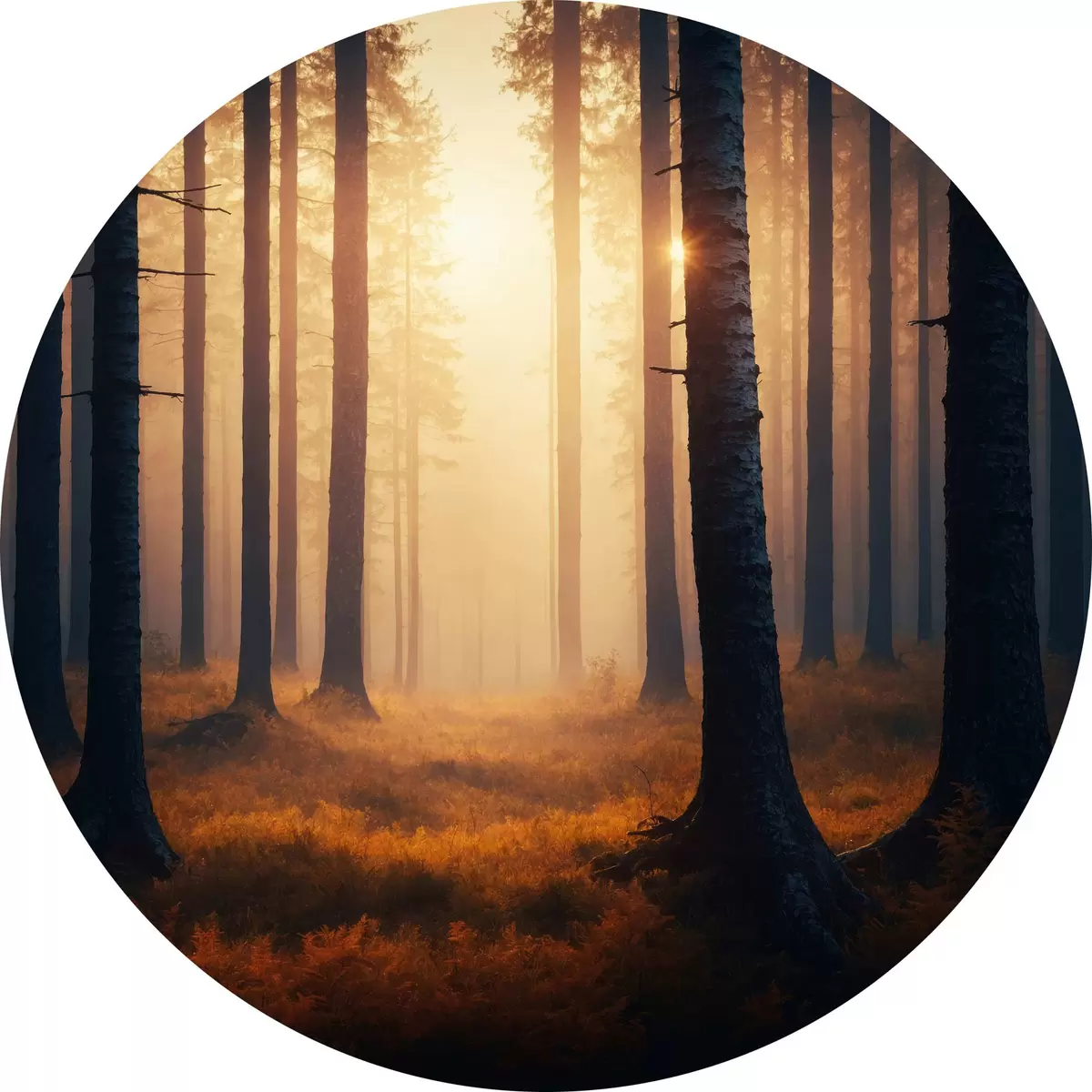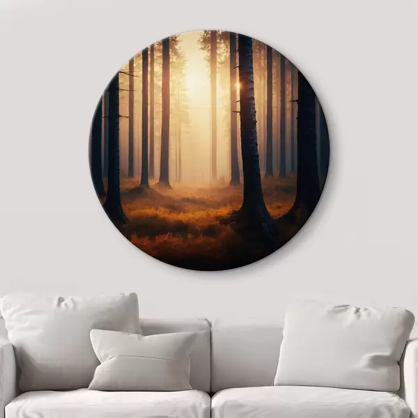 Runde Gemälde Sonnenuntergang im Wald r40473