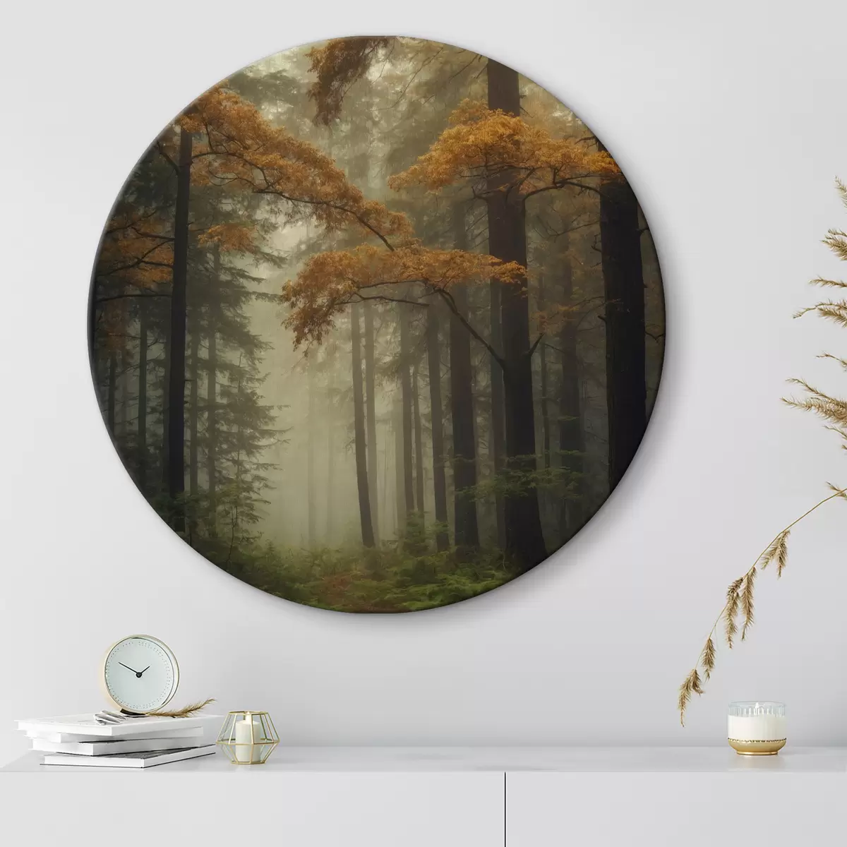 Runde Gemälde Nebel im Herbstwald r40474