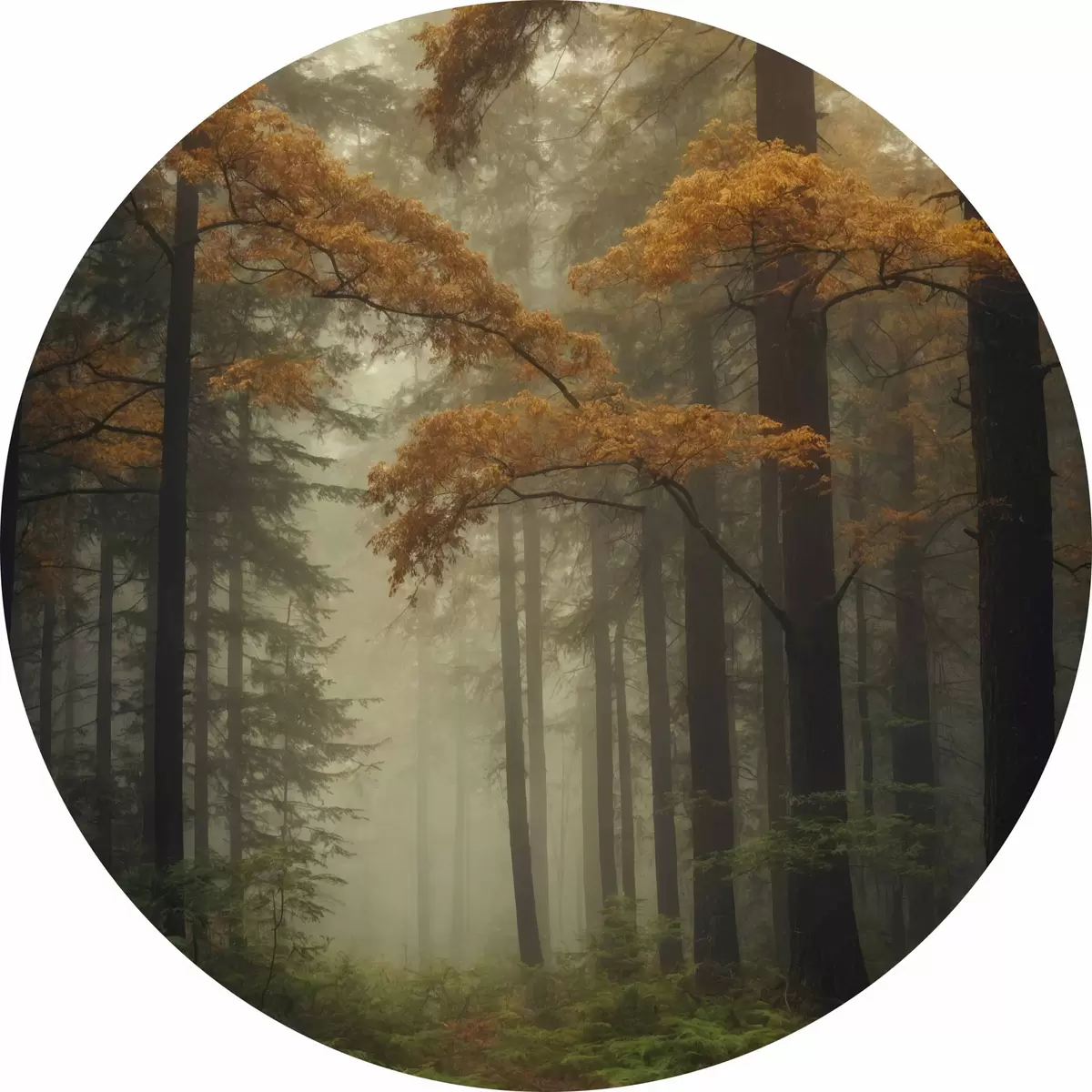 Runde Gemälde Nebel im Herbstwald r40474