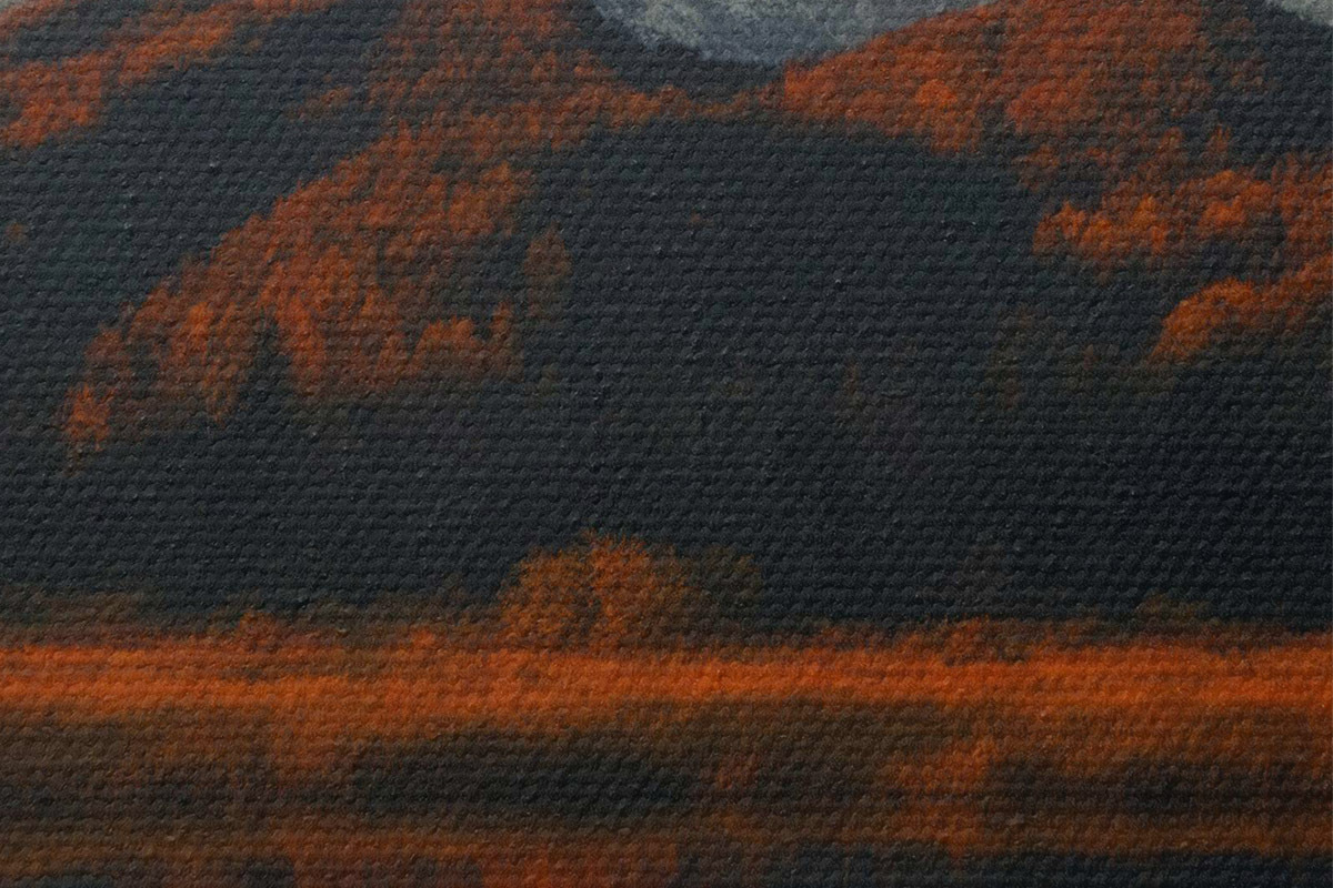 Das feine Fadengeflecht auf dieser Leinwand ähnelt der Oberfläche von professionellen Künstlerleinwänden.