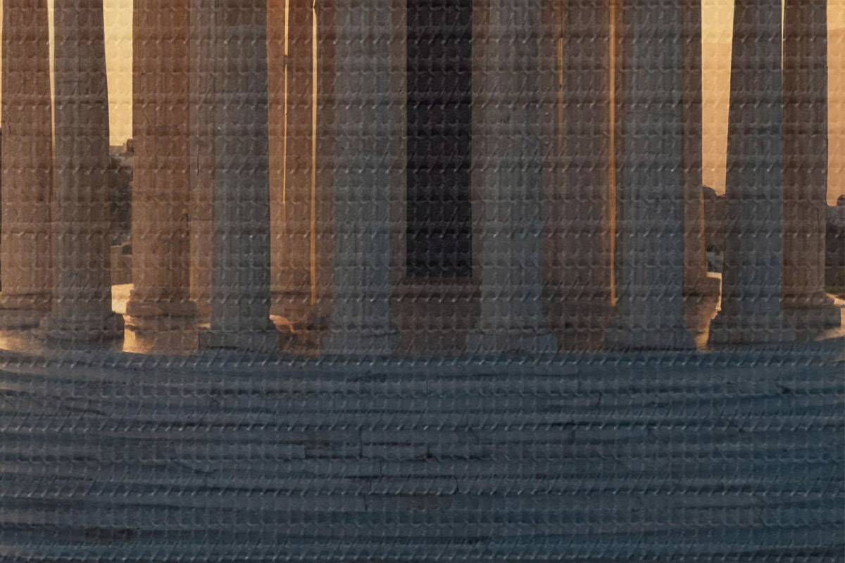 Um die Leinwand auf Keilrahmen zu spannen, ohne das Bild zu beschädigen, verwenden wir ein gespiegeltes Bild.