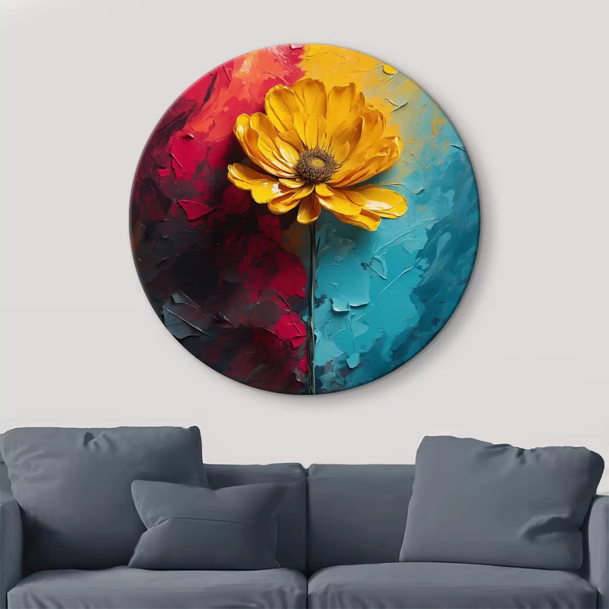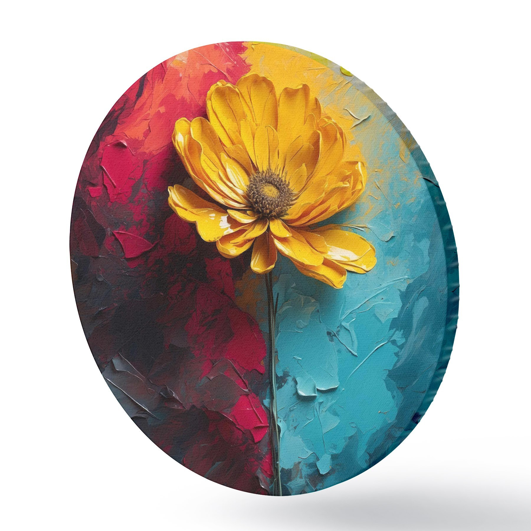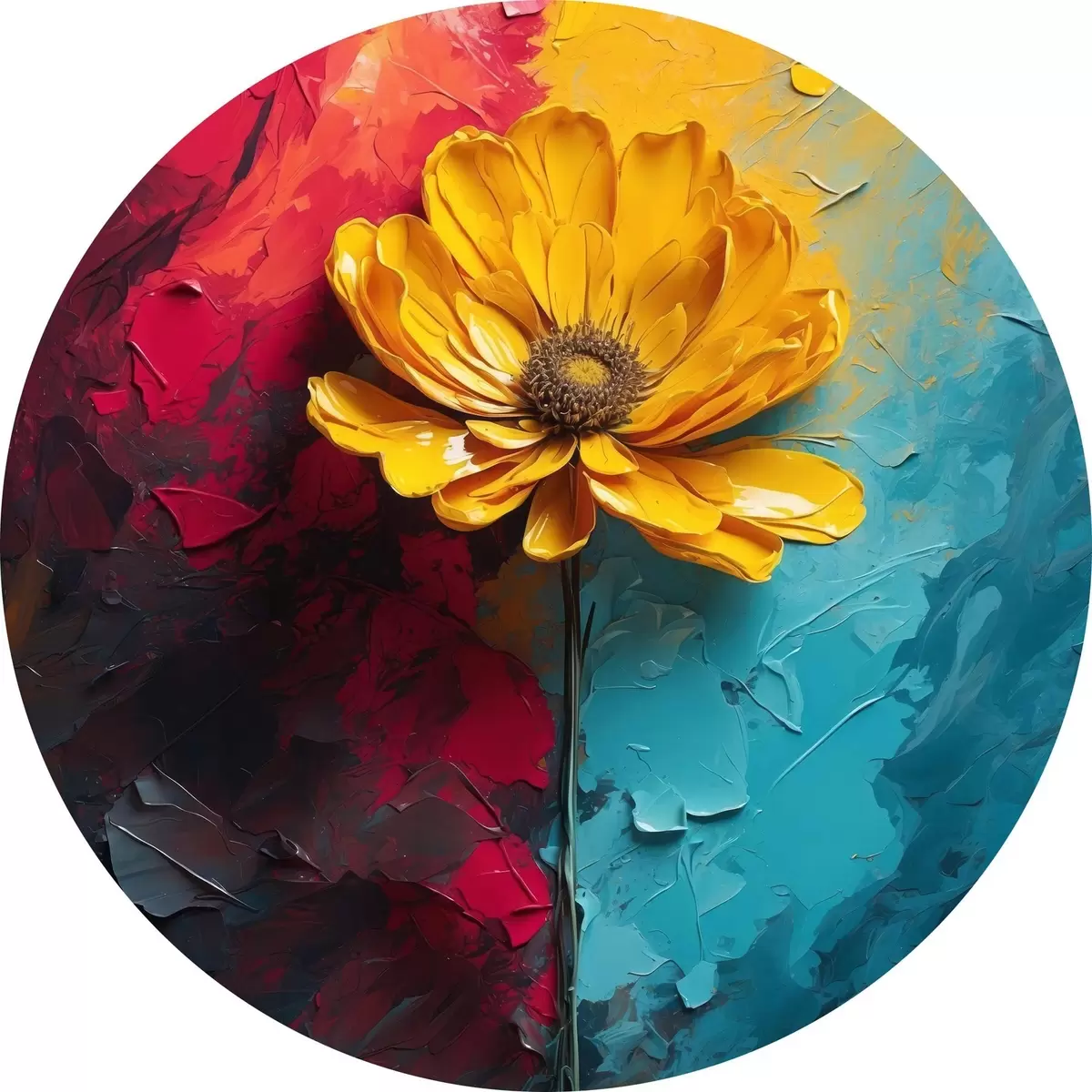 Runde Gemälde Gelbe Blume auf einem abstrakten Acryl-Hintergrund r40483