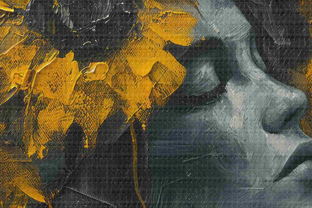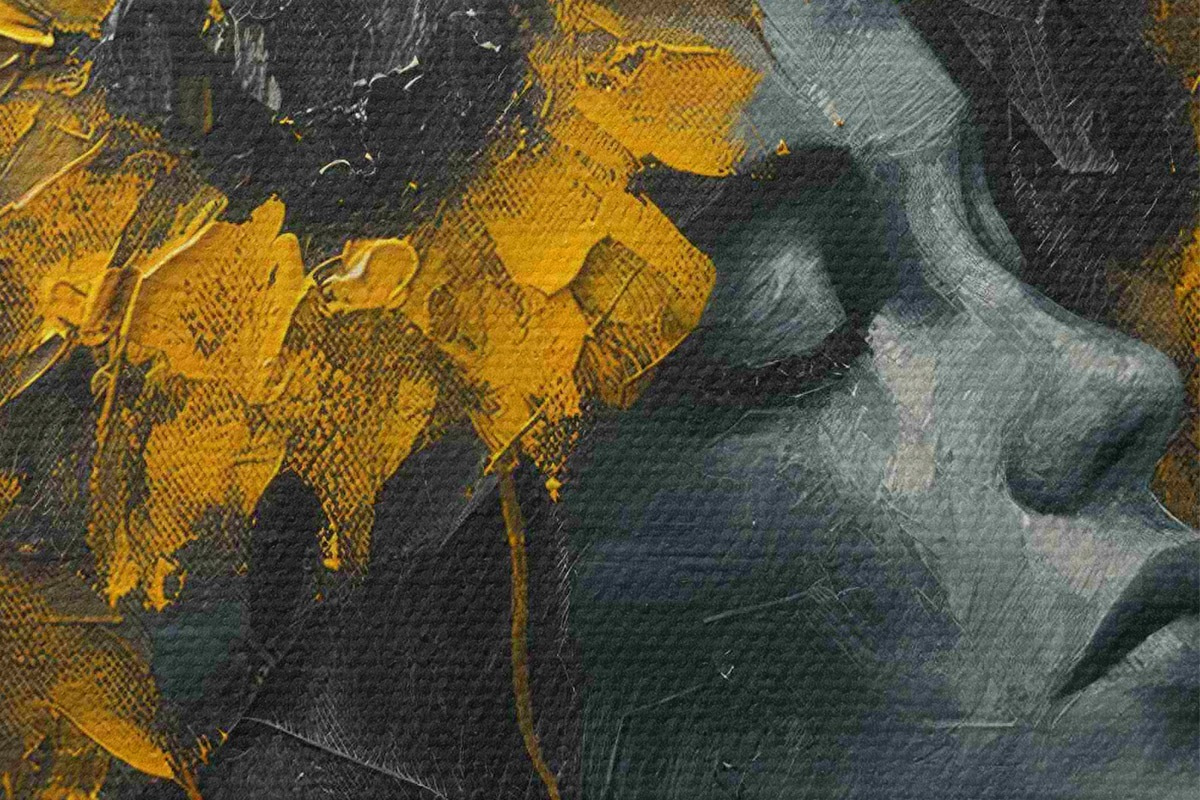 Bild Gesicht einer Frau in Grautönen mit Sonnenblumen Nr r40500