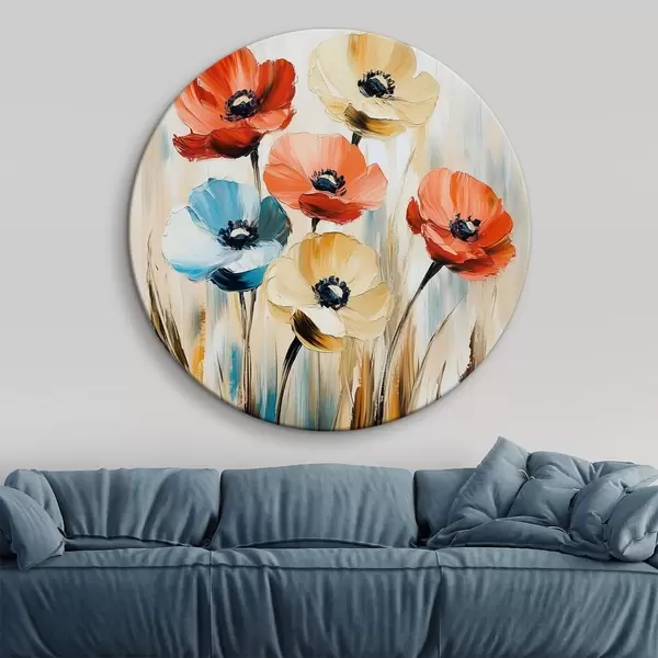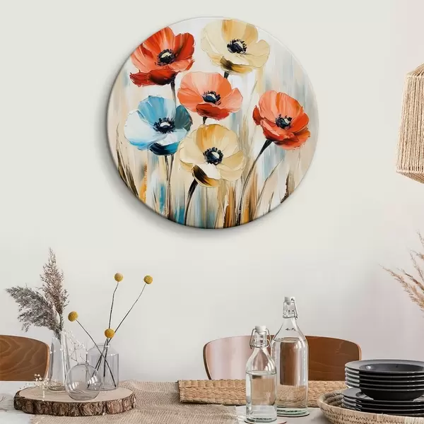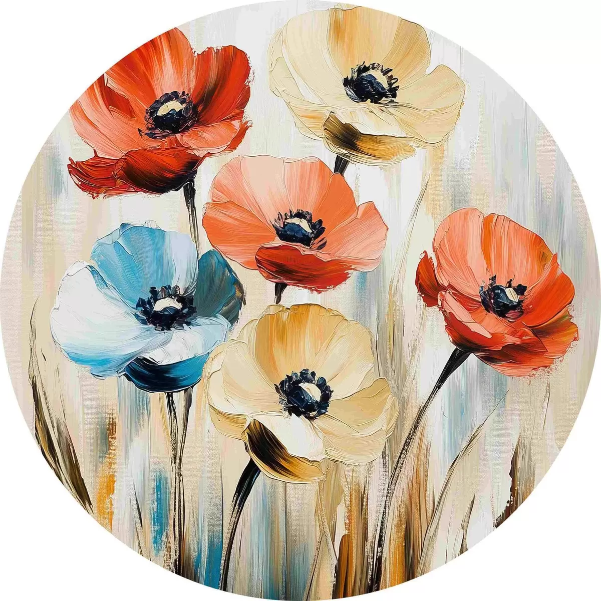 Runde Gemälde Mehrfarbige Mohnblumen r40505